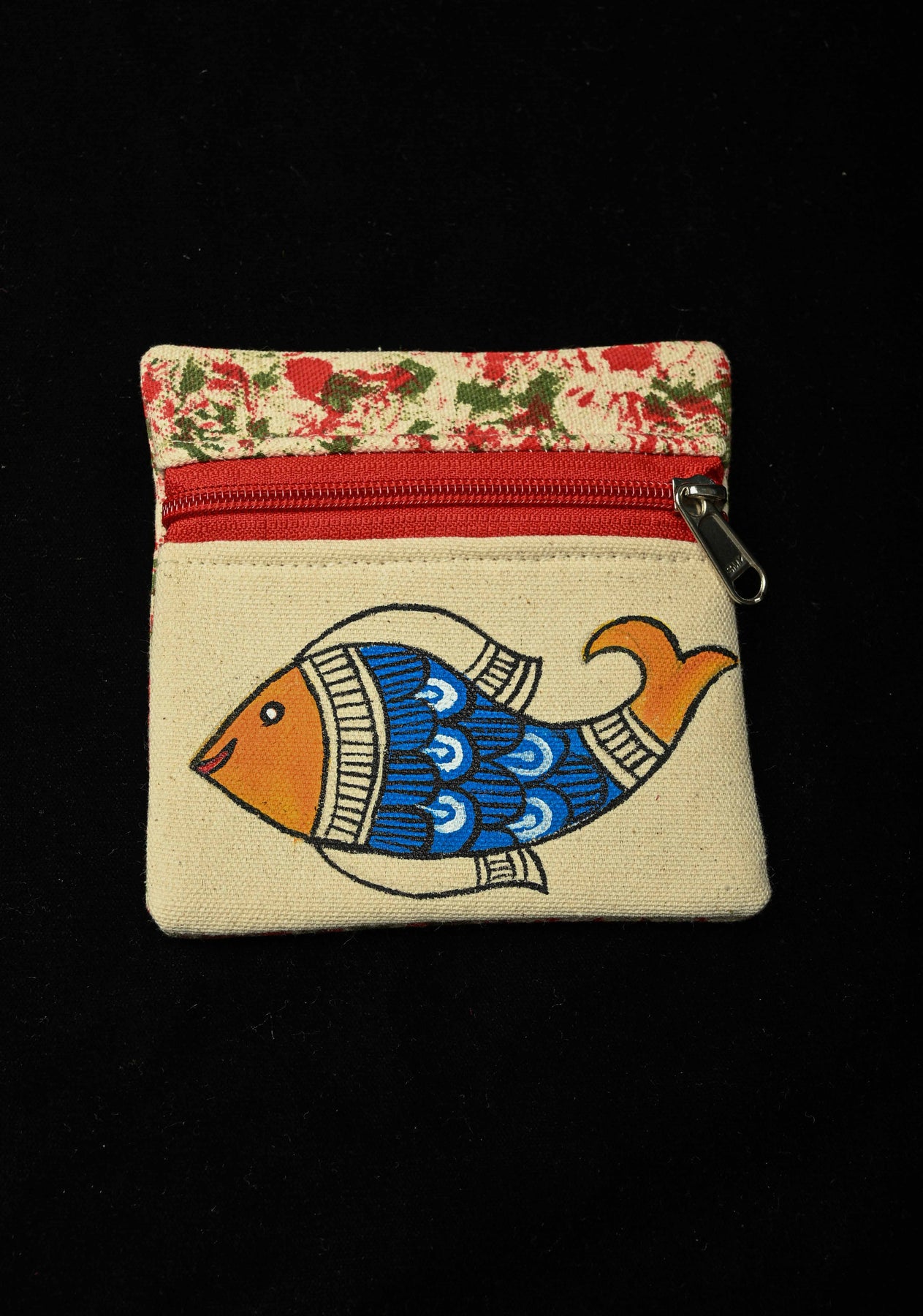 Pouch : Madhubani Hand Painting Fish Coin Pouch