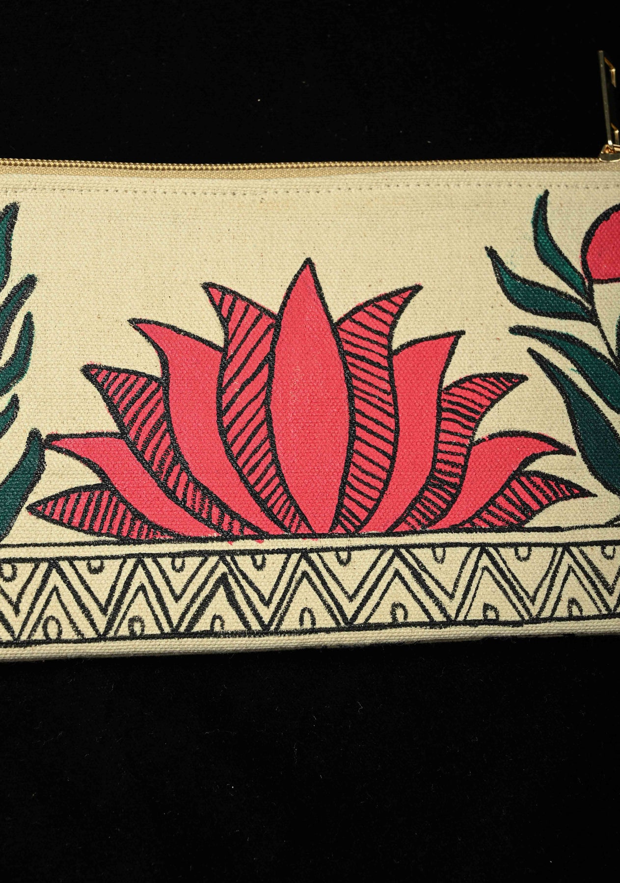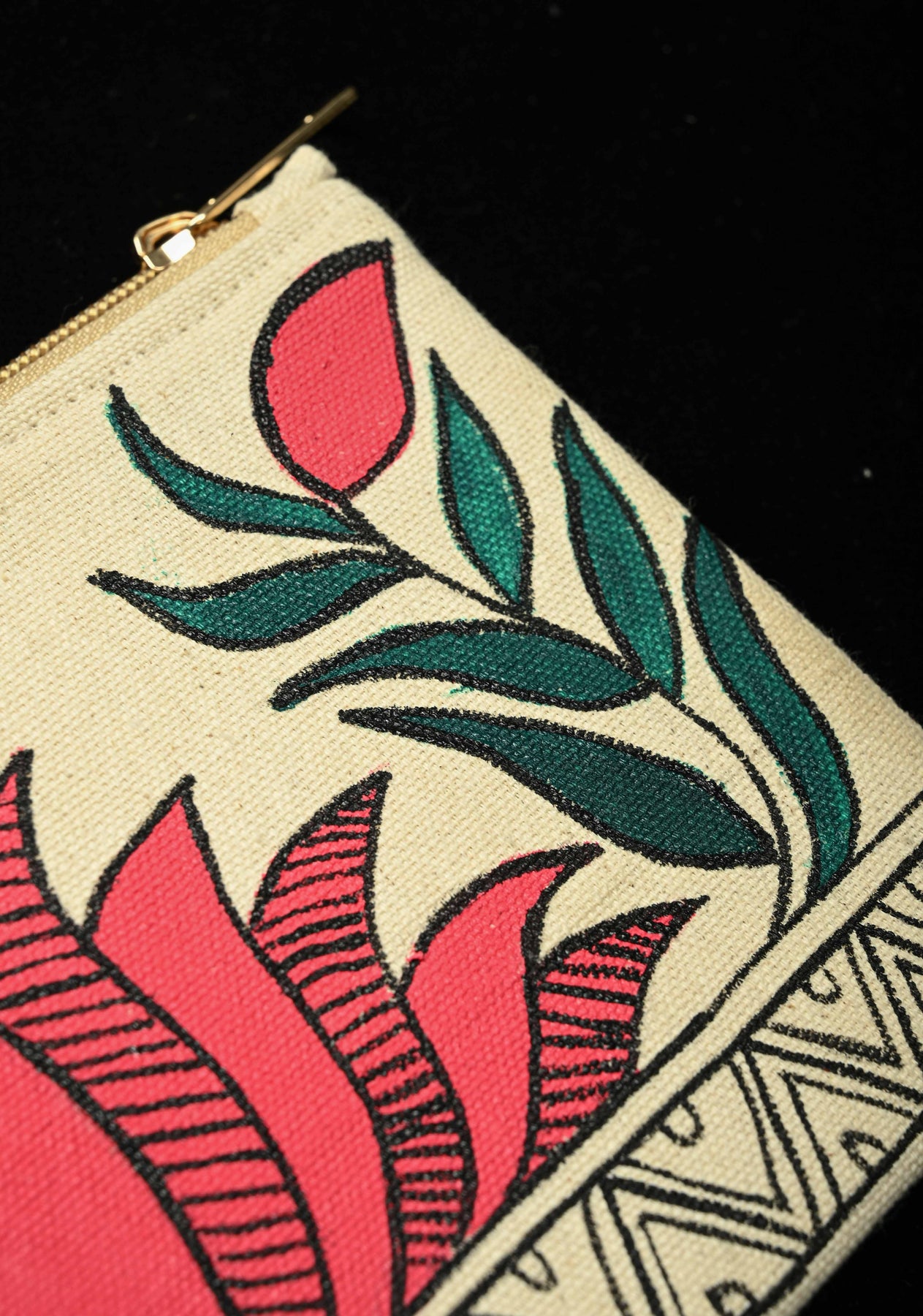 This Pink Lotus Bloom Hand-Painted Utility Pouch is a charming accessory that combines elegance with everyday functionality. Crafted from durable canvas, it features a delicate hand-painted lotus motif in soft pink hues, showcasing intricate detailing and artistic finesse. Compact yet spacious, the pouch is perfect for storing makeup, stationery, travel essentials, or small personal items. Lightweight, sturdy, and visually appealing, it adds a touch of handmade artistry and vibrant charm to your daily routine, making organization both practical and beautiful.