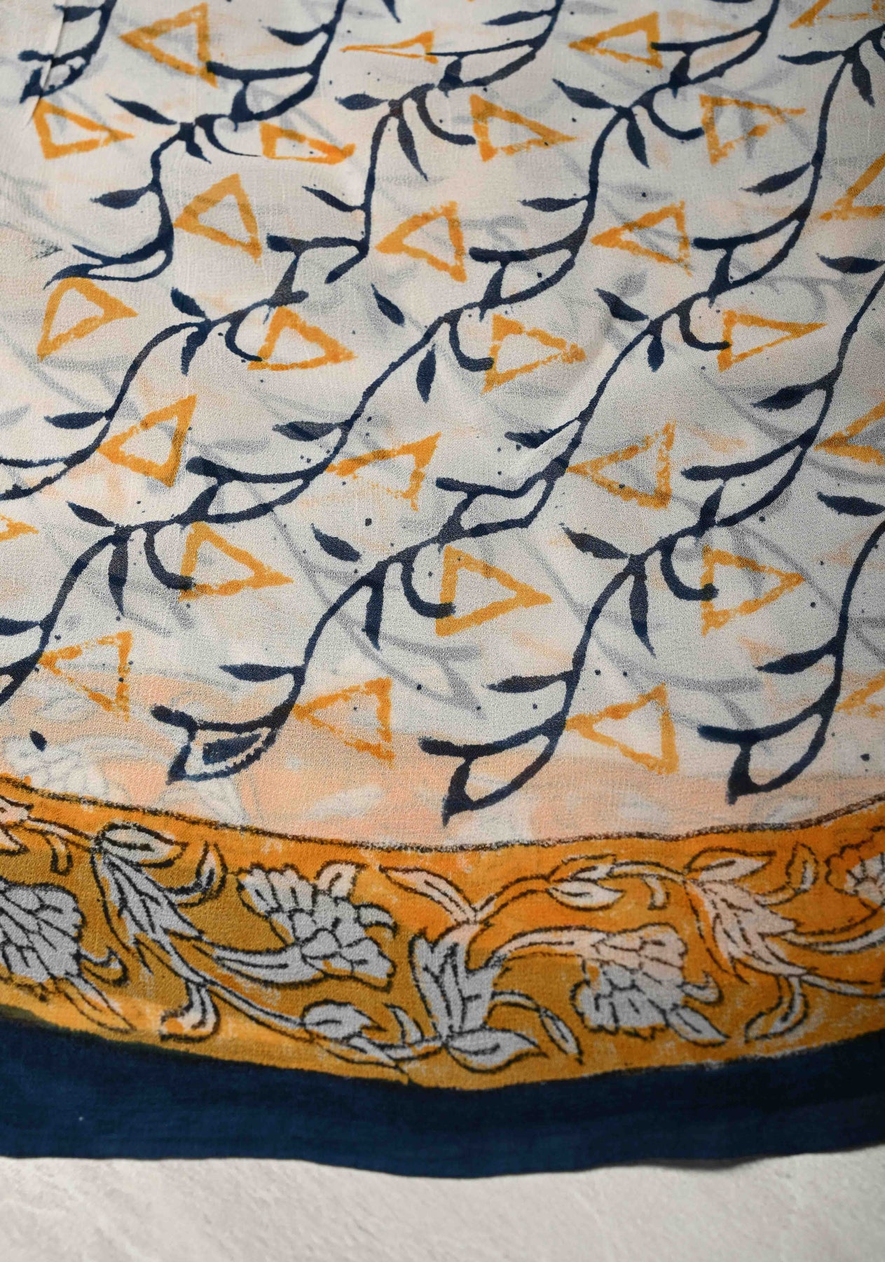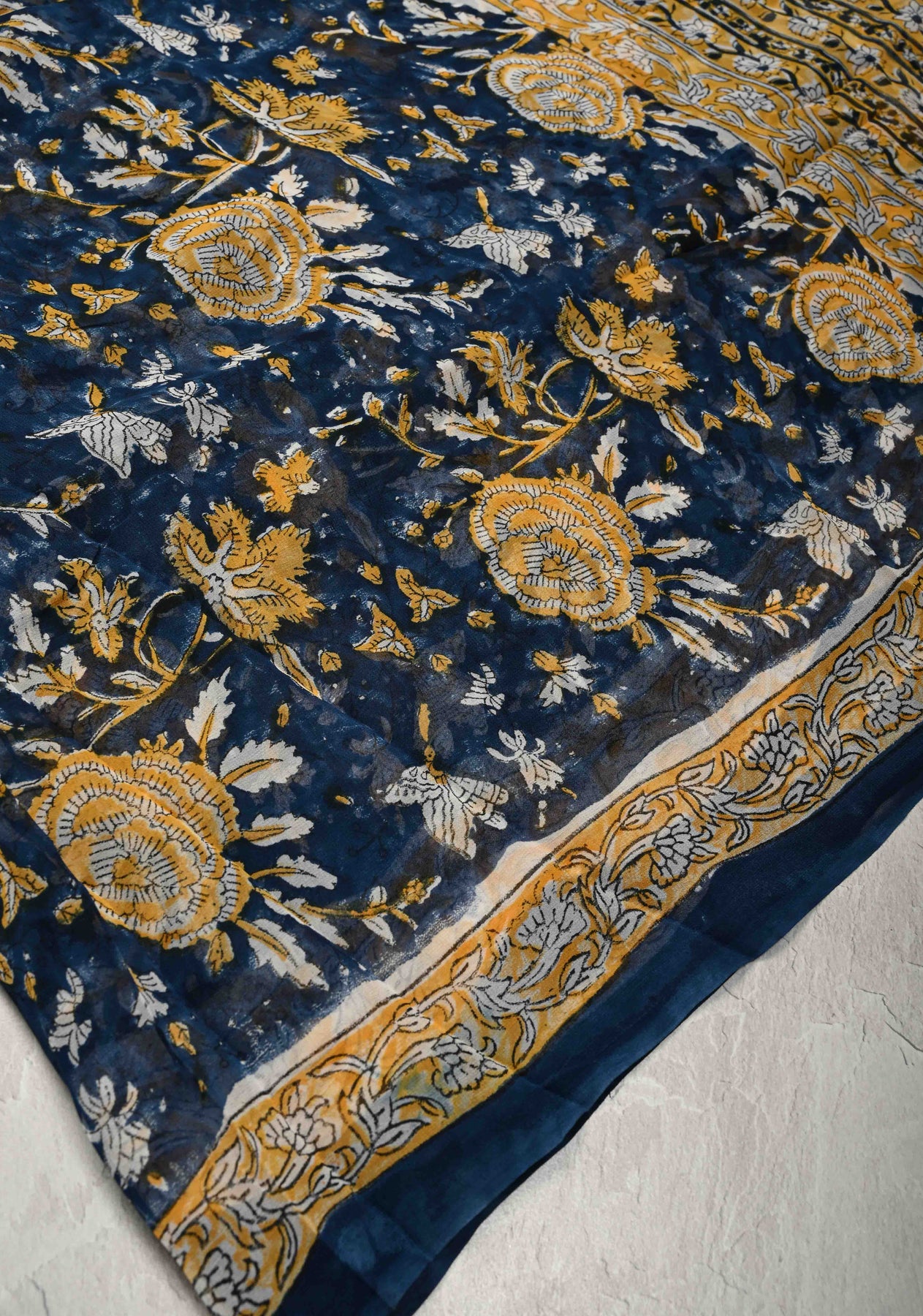 Prussian Blue Georgette Saree with Sanganeri Hand Block Print