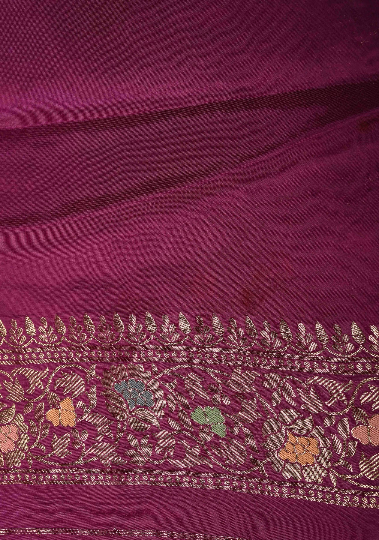 Purple Banarasi Semi Silk Saree with Meenakari Zari Buttas and Wide Zari Border