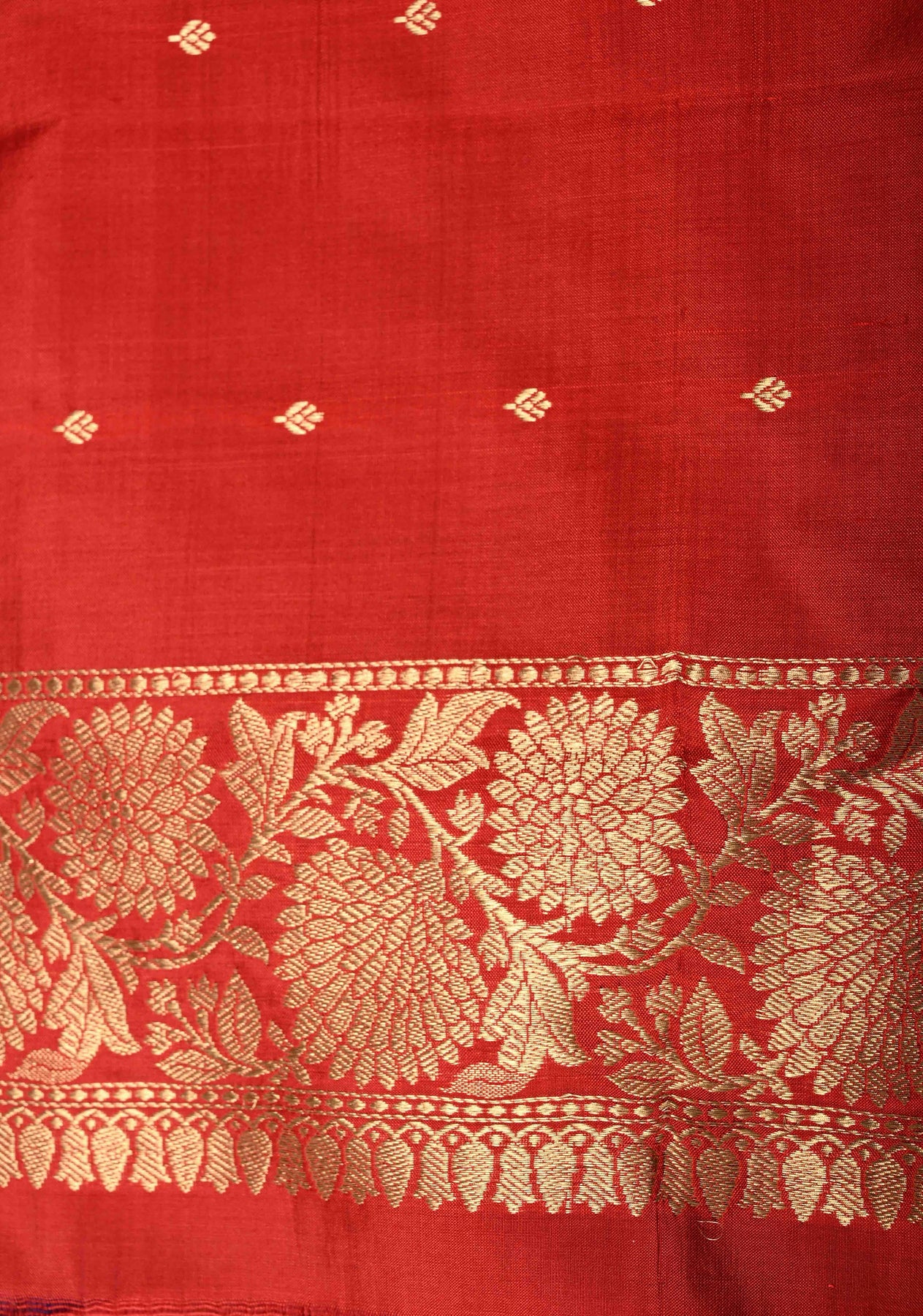 The contrast zari border and pallu add a regal touch, making it perfect for weddings, festive occasions, and celebrations. Crafted from pure Katan silk, it drapes elegantly while maintaining a rich, lustrous texture.