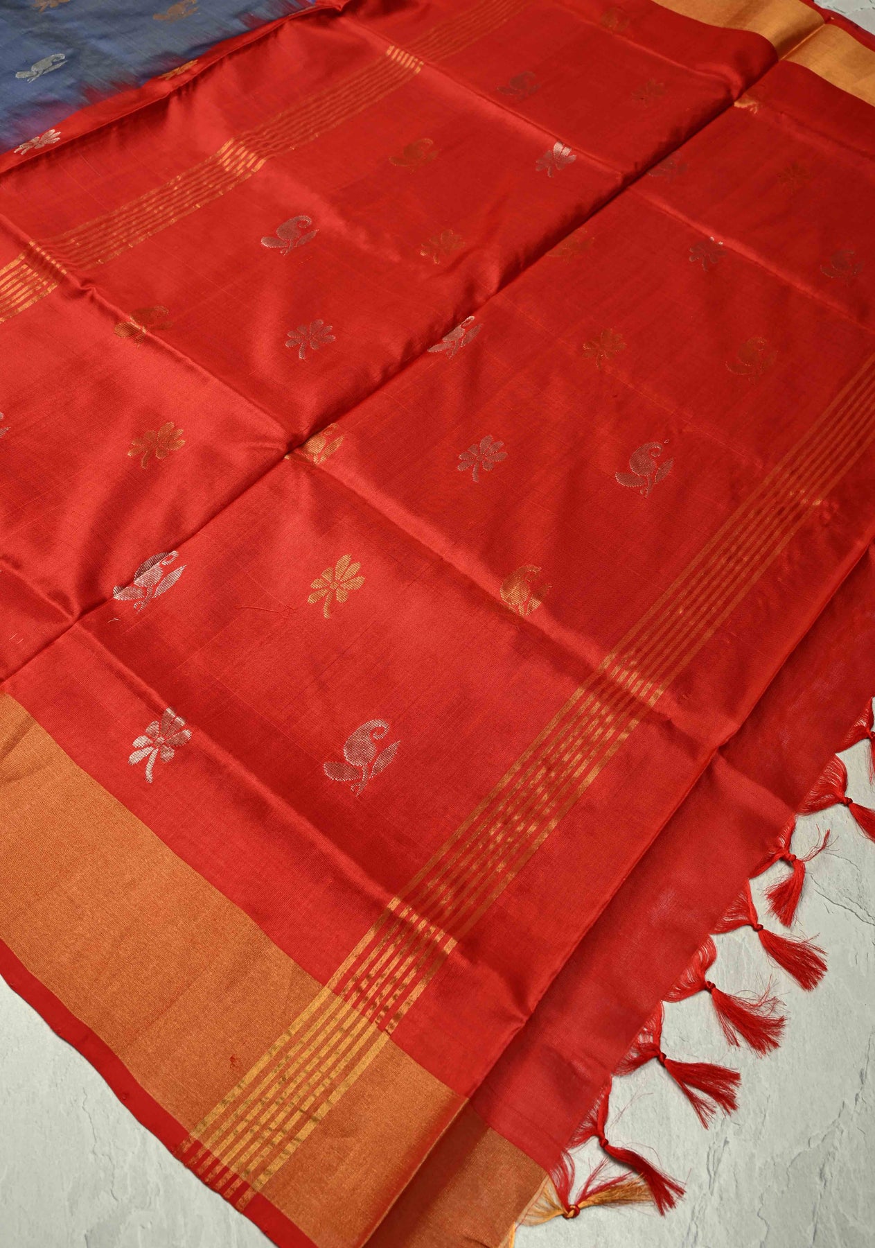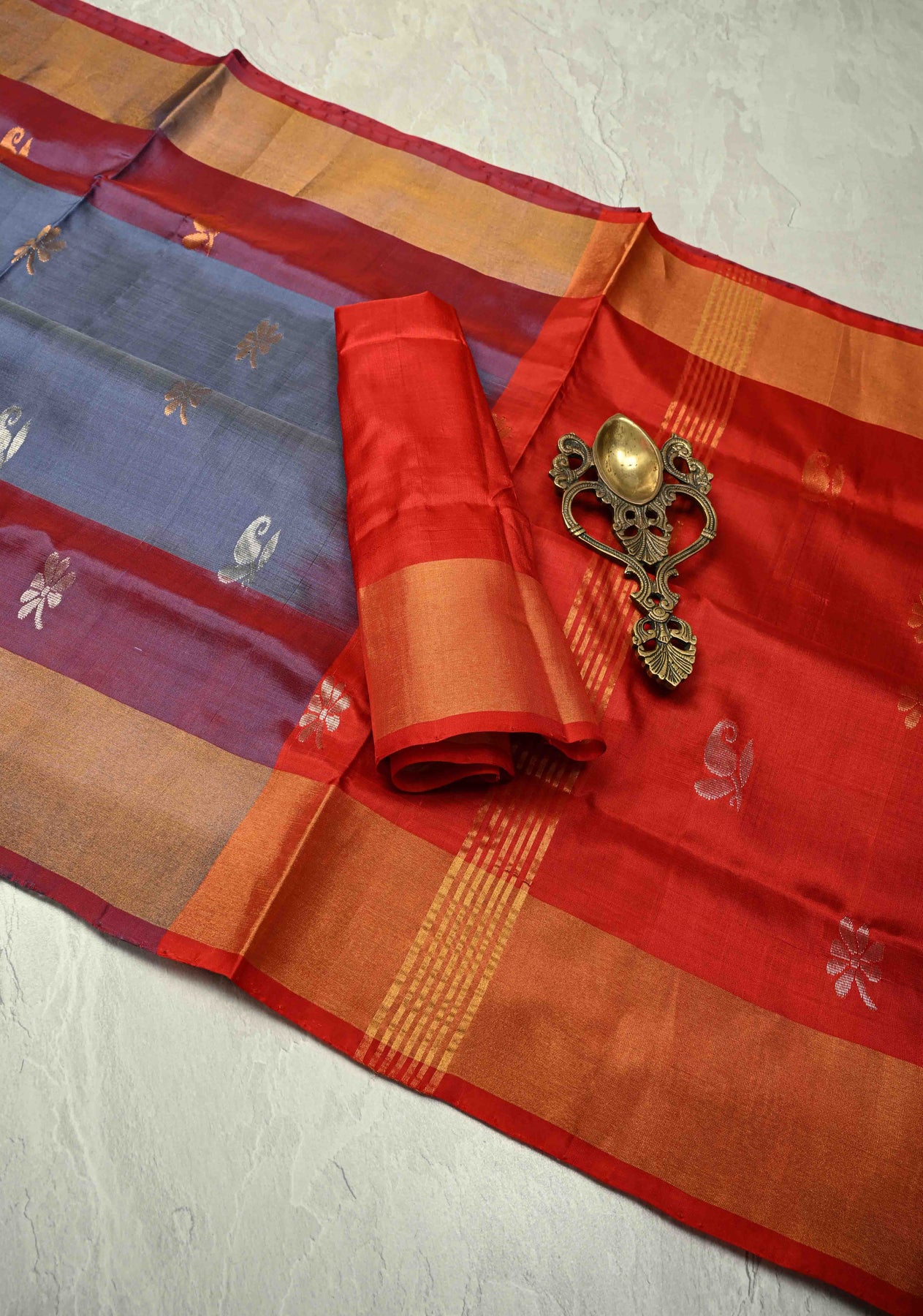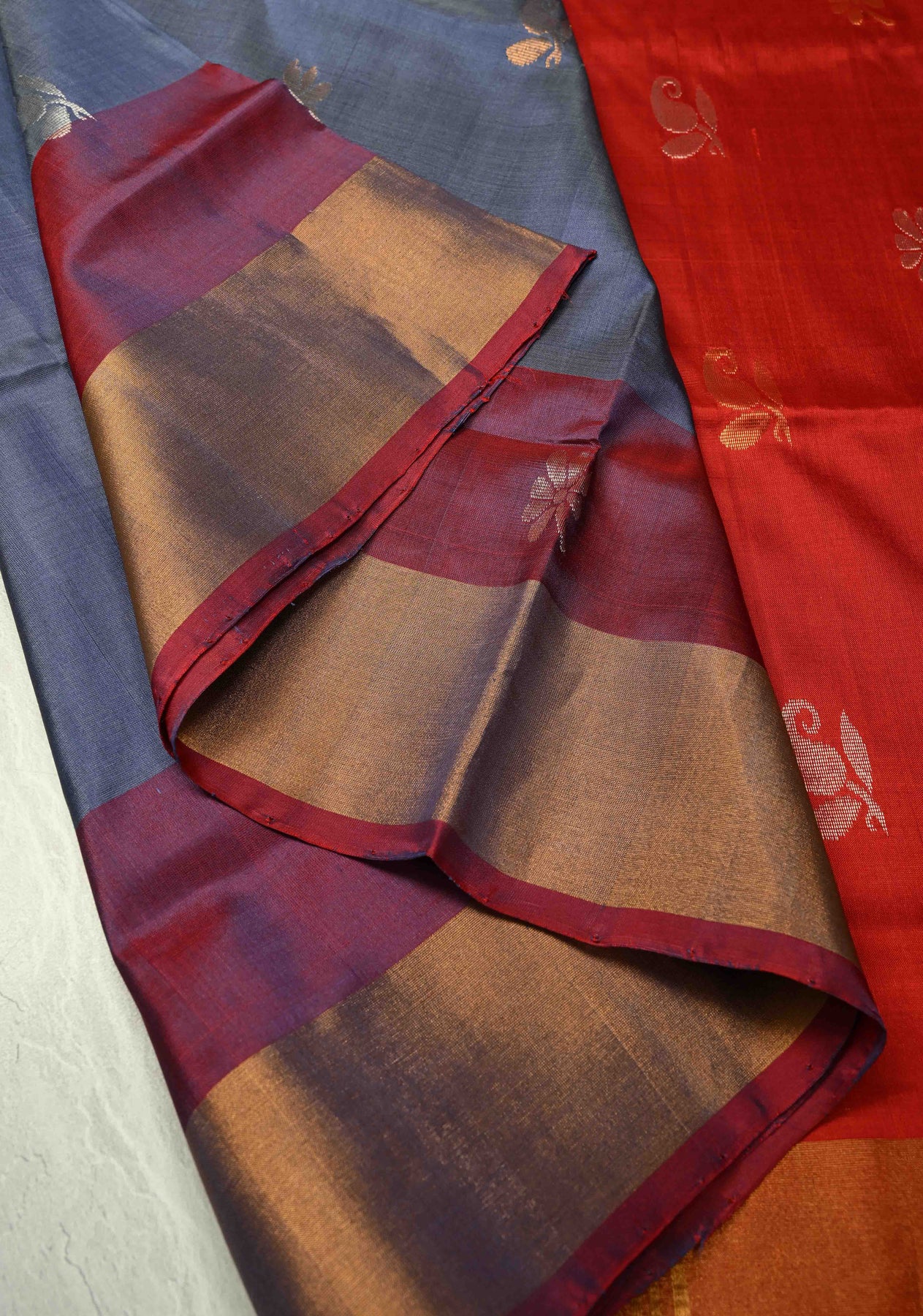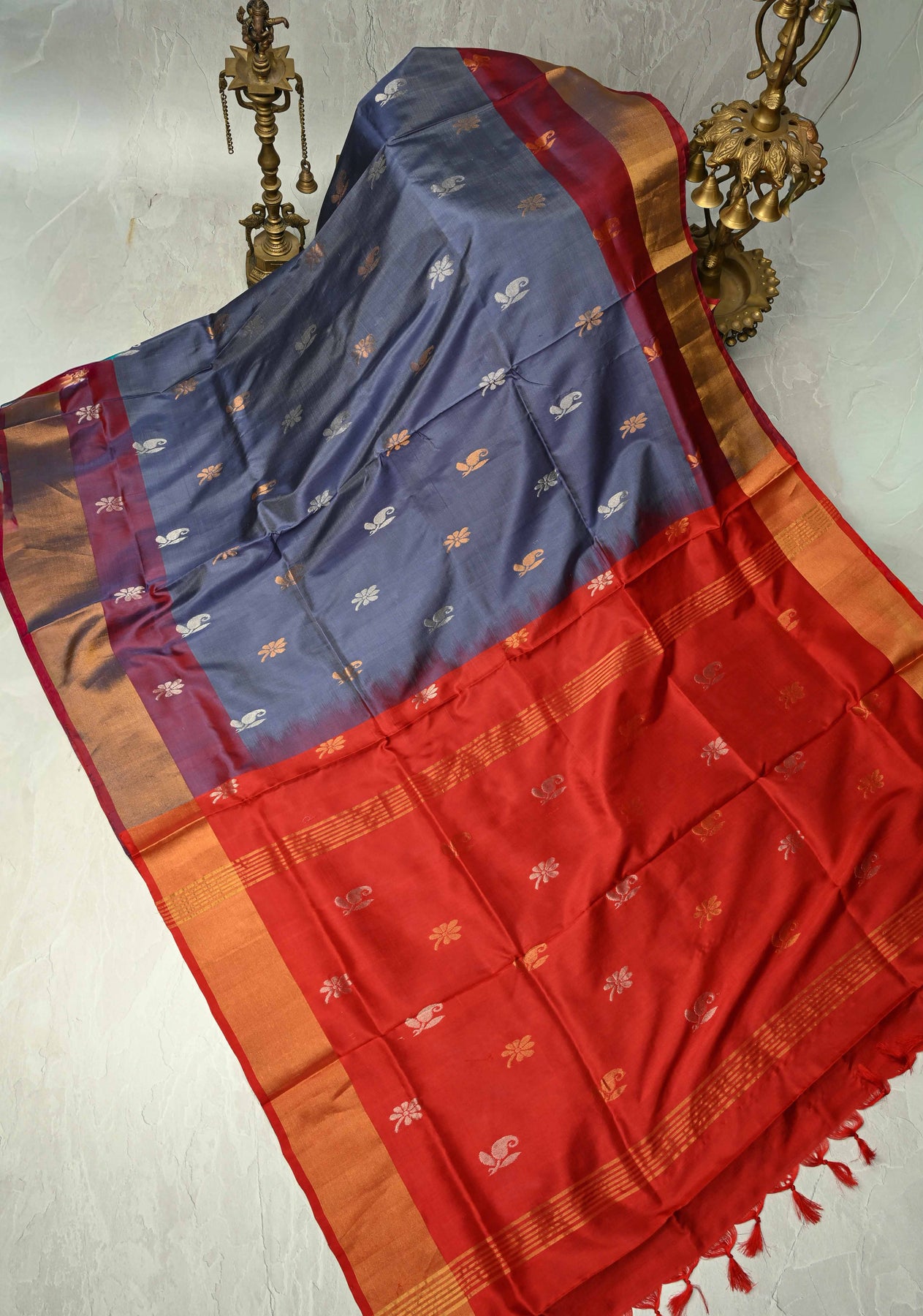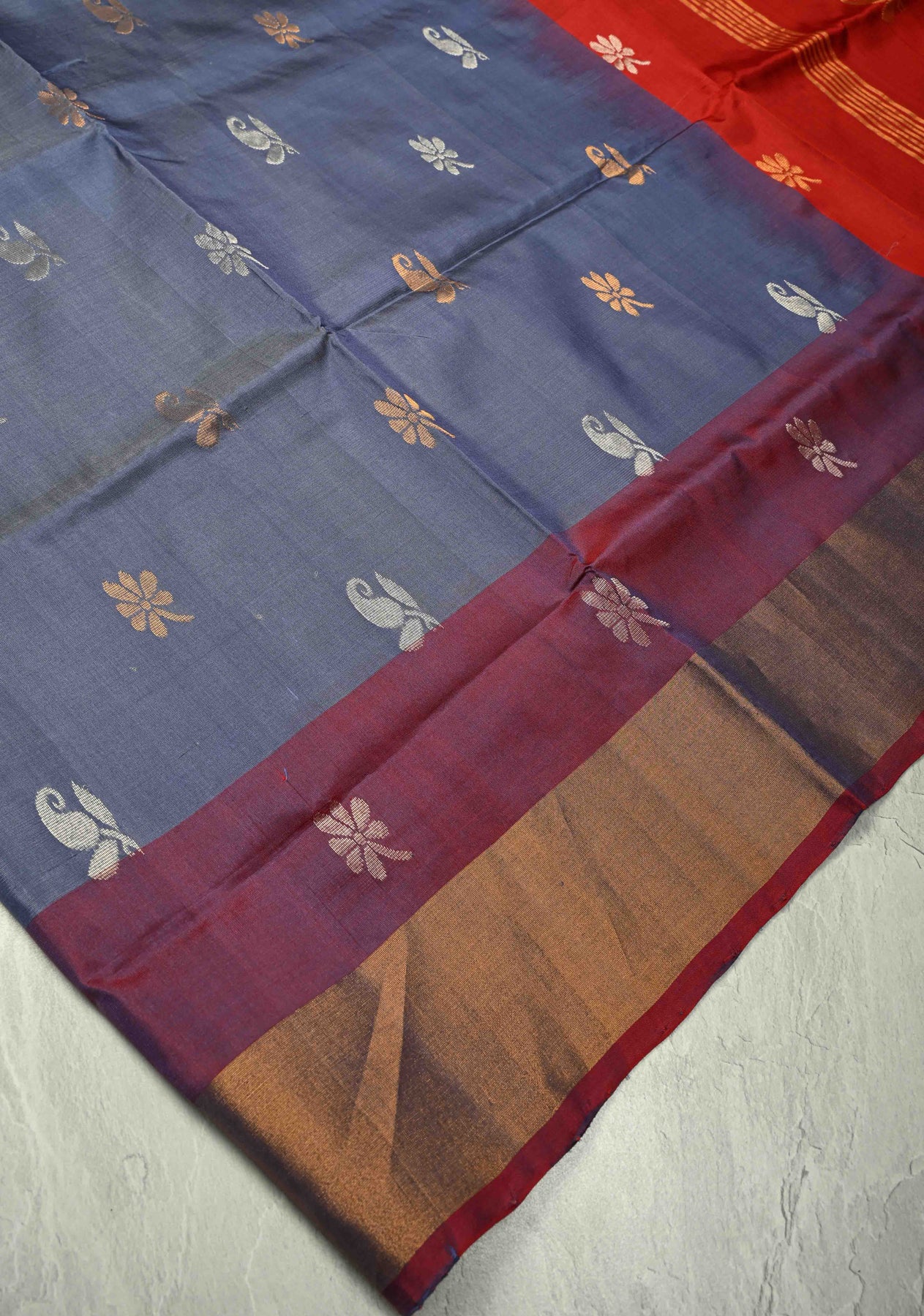 Stunning Gray Uppada Handloom Silk Saree with Gold Silver Zari Buttas and Tissue Border | SILK MARK CERTIFIED