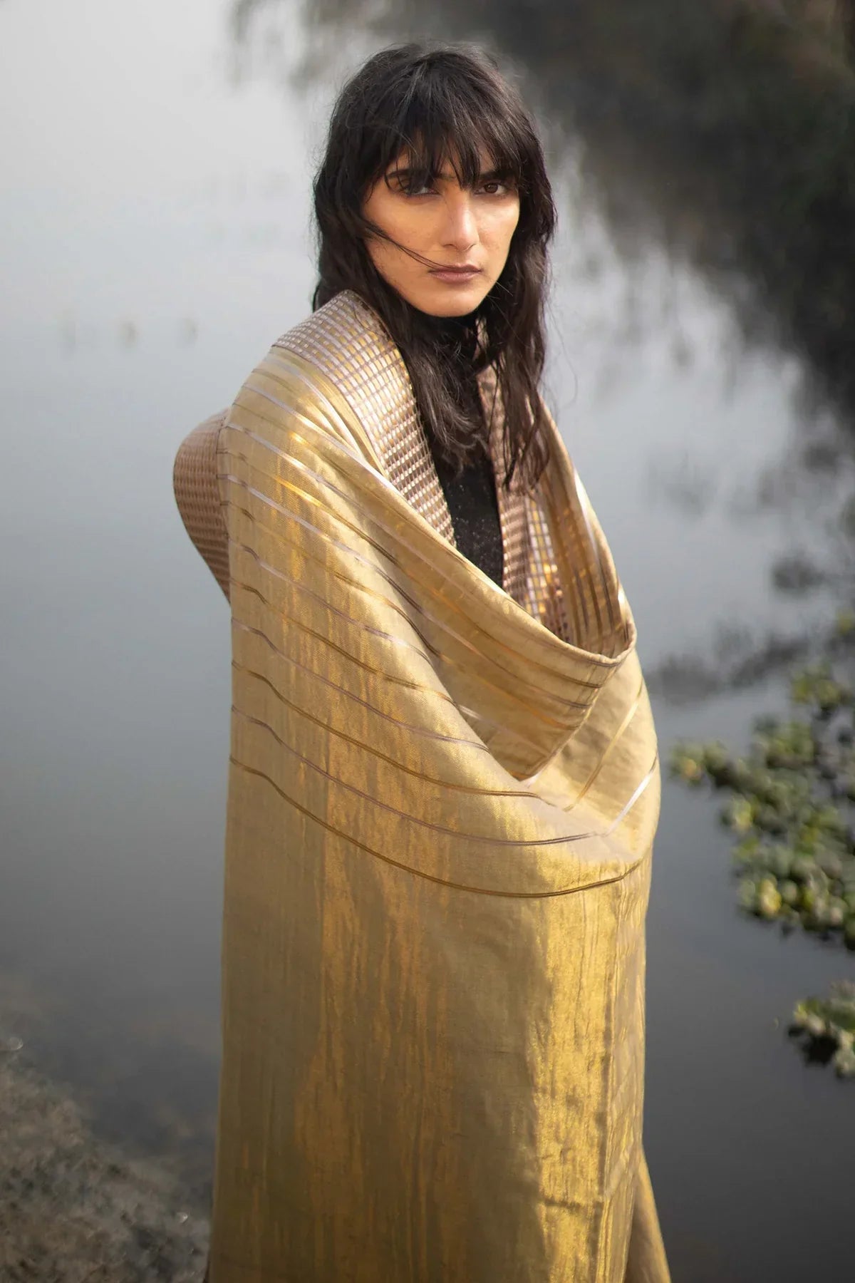 The TABEER is handwoven pashmina zari reversible. Hand weaving and embroidery with metallic polymer sized 40x80inches. The fabric is soft, warm and a great occasion wear.