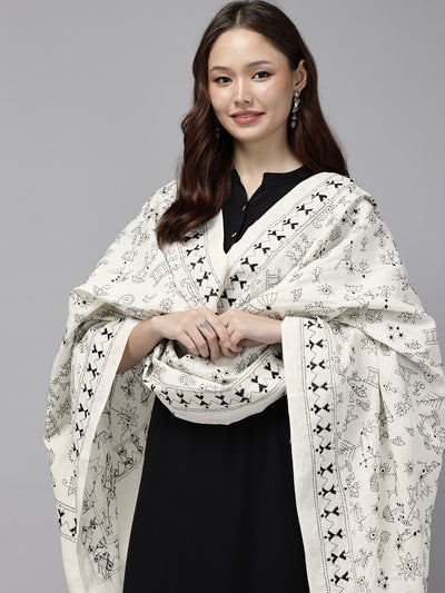 Ivory Pure Handloom Tussar Silk saree with Blue Pottery Design with Gotta Lace Border | SILK MARK CERTIFIED