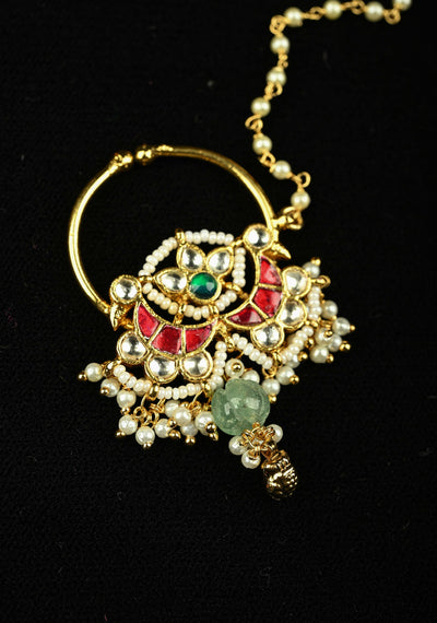 Non Piercing Nath with Jadau Kundan Stones and Chain and Danling Beads