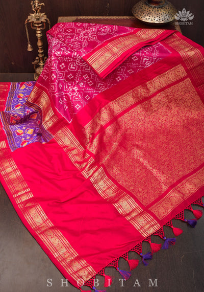Unique Ikkat Patola Kanjivaram Fusion Silk Saree with wide zari borders and zari pallu | SILK MARK CERTIFIED