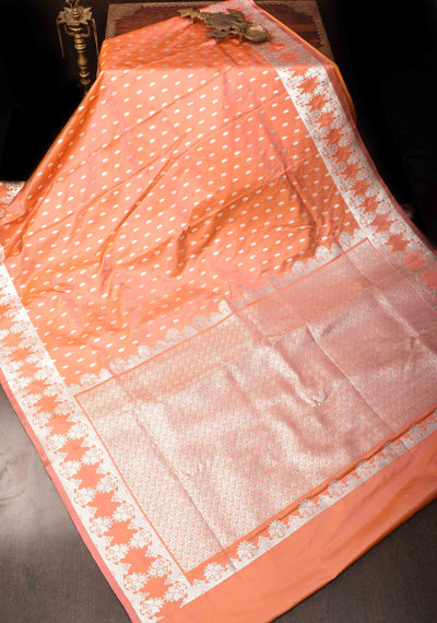 Peach Mashru silk Saree with Floral butis and Zari Border | SILK MARK CERTIFIED