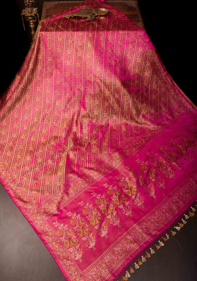 Pink Tanchoi Floral Banarasi Silk Saree in Pure Silk Satin | SILK MARK CERTIFIED