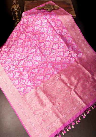 Pink Banarasi Katan Silk Saree with Rose Brocade Jaal and Alfi Border | SILK MARK CERTIFIED