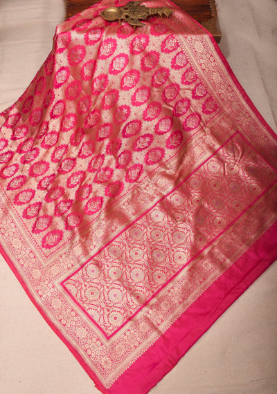 Pink Banarasi Meenakari floral Brocade Katan Silk Saree with Zari Border | SILK MARK CERTIFIED