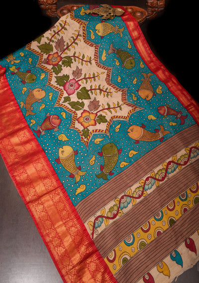 Authentic Pen Kalamkari on Chennuri Silk with Big Border