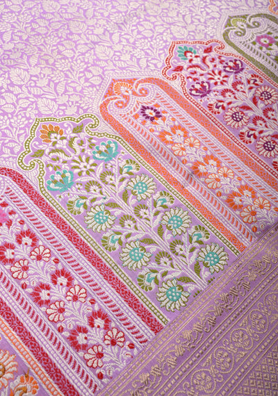 Lilac Pure Banarasi Katan Silk Saree with Floral Brocade Jaal and Meenakari Zari Border | SILK MARK CERTIFIED
