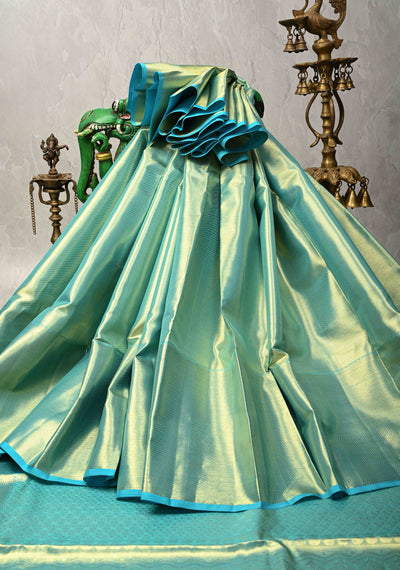 Turquoise Tissue Kanjivaram Pure Silk Saree with Brocade and Zari Border | SILK MARK CERTIFIED