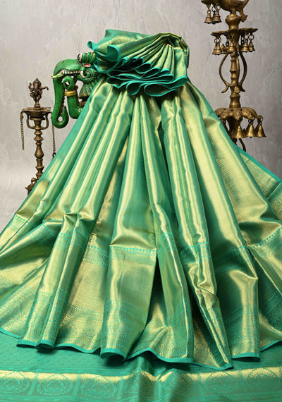 Green Tissue Kanjivaram Pure Silk Saree with Brocade and Zari Border | SILK MARK CERTIFIED