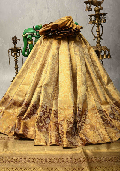 Gold Tissue Kanjivaram Pure Silk Saree with Meenakari Floral Brocade Jaal and Border | SILK MARK CERTIFIED