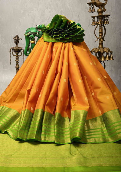 Peach Orange Pure Kanjivaram Silk Saree with Zari Brocade and Contrast Wide Zari Border | SILK MARK CERTIFIED