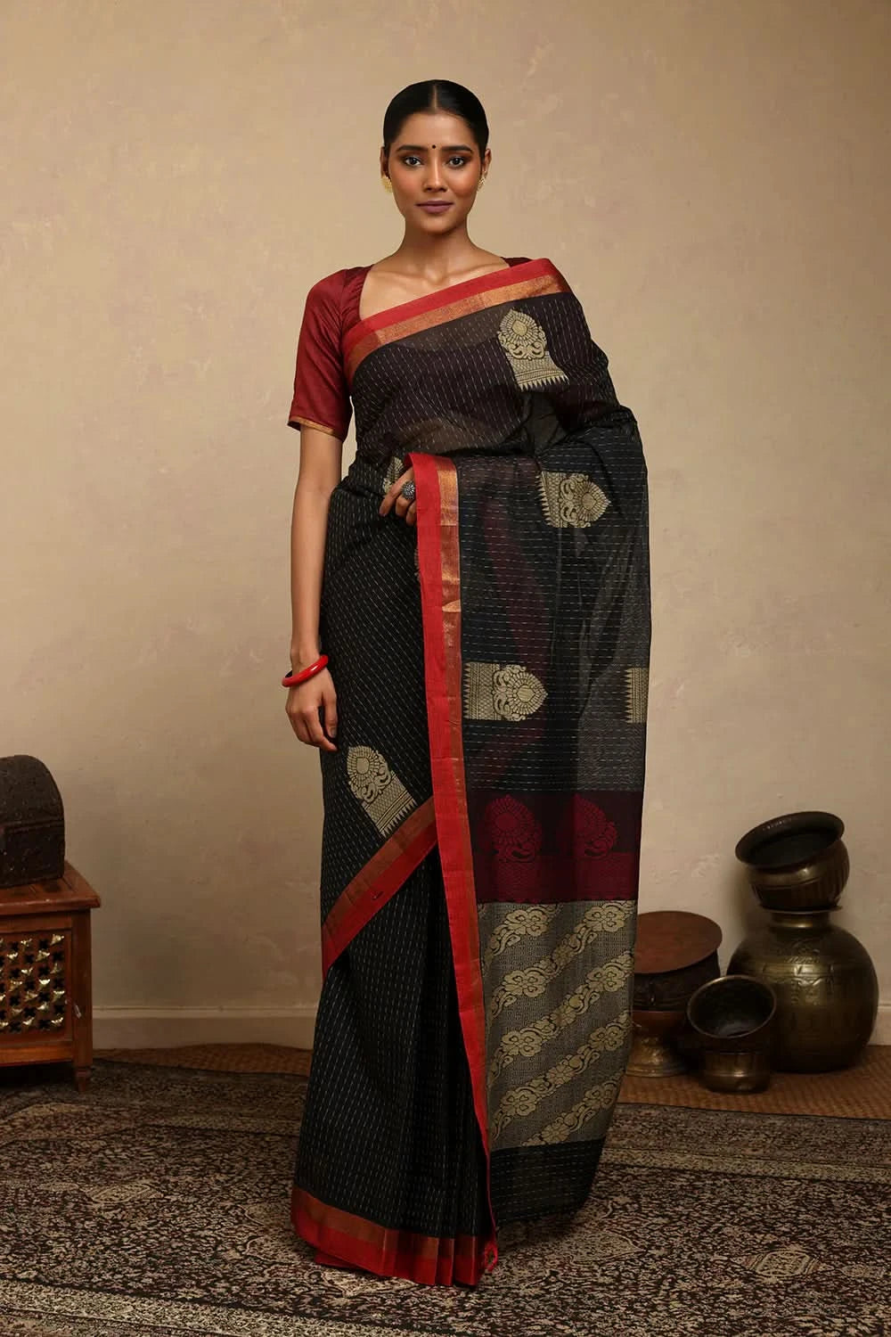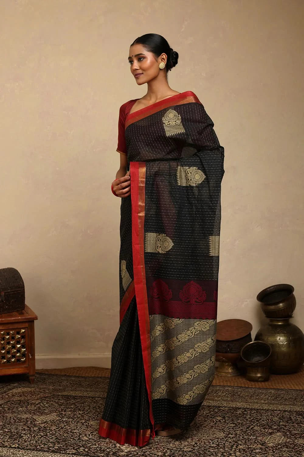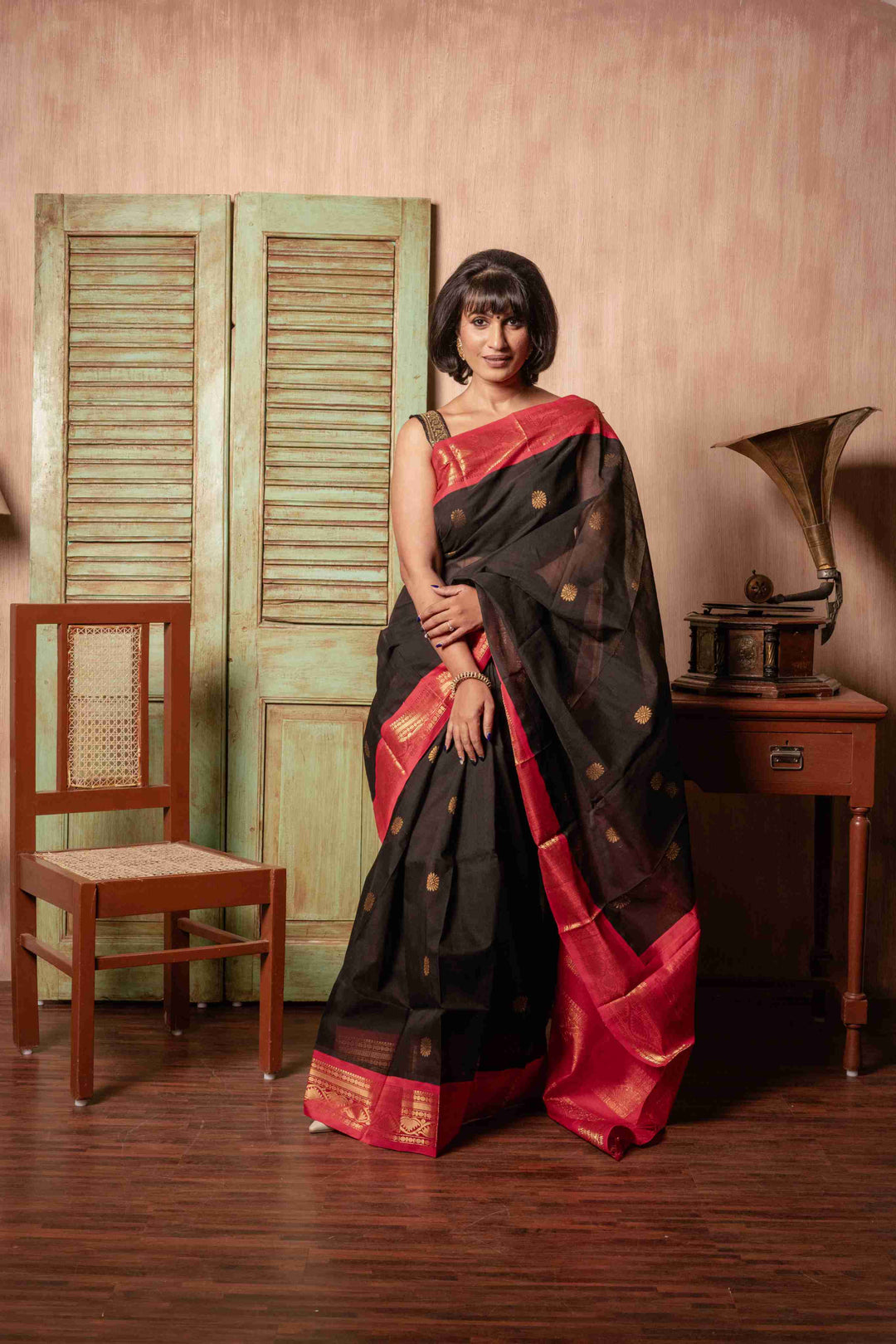 Handloom Black Kanchi Cotton Saree | Shobitam