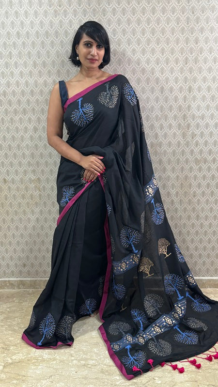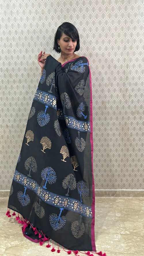 Tree Of Life Handblock Cotton Saree | Shobitam