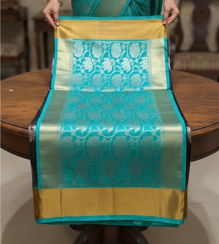 That Black & Teal Saree - Handwoven Uppada Silk Saree | SILK MARK CERTIFIED | SHOBITAM