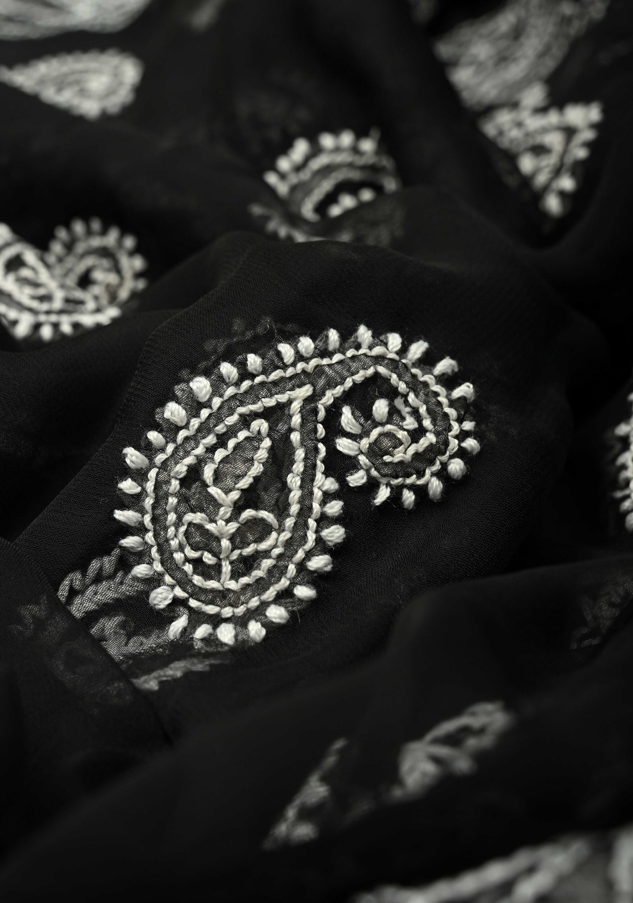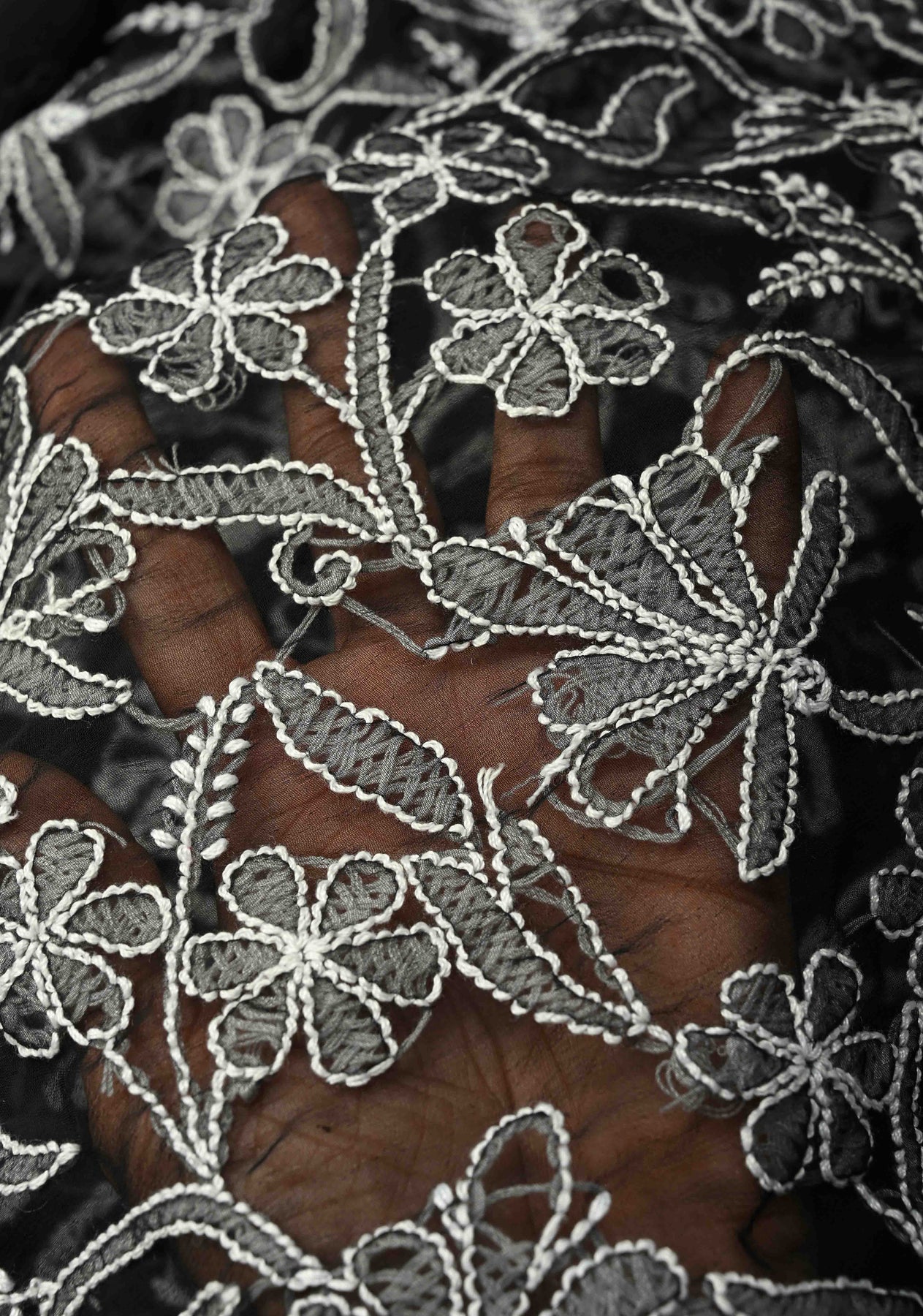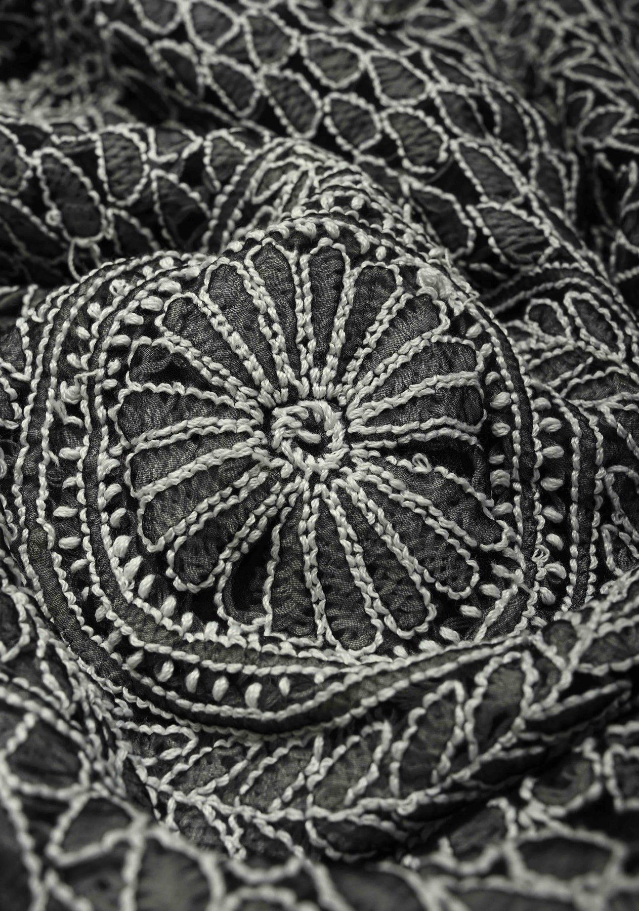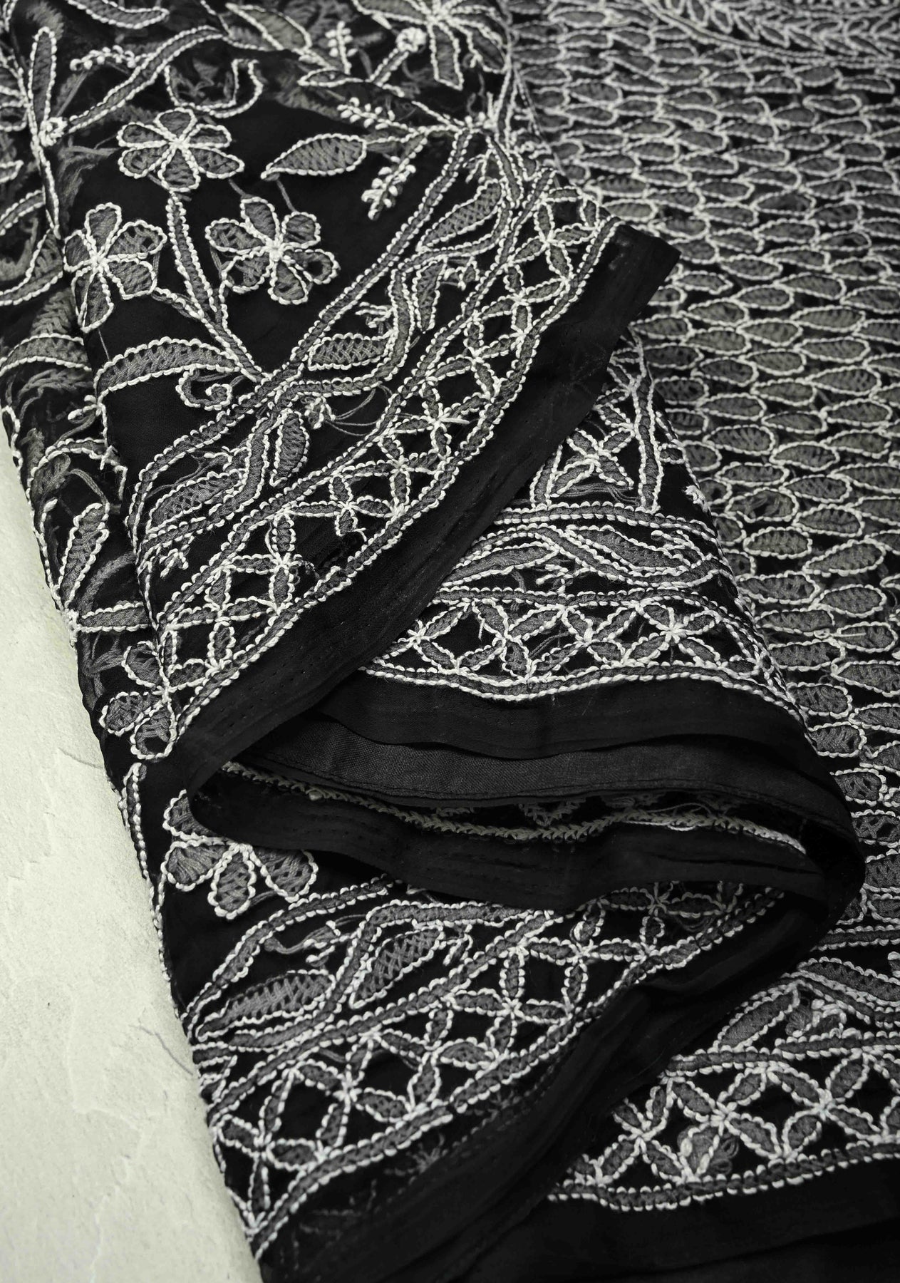 Black Authentic Hand-Embroidered Full Jaal Chikankari Georgette Saree with Skirt Border