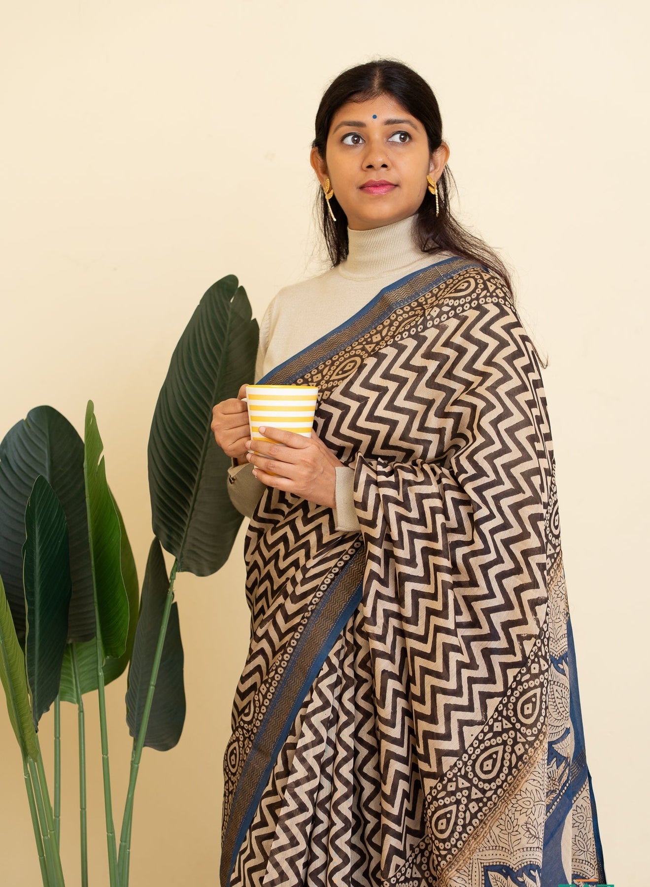 This White & Black Maheshwari silk cotton saree is designed for women who prefer their workwear to be minimal, intelligent, and effortlessly stylish. Woven in the signature silk-cotton blend of Maheshwar, it offers the perfect balance of soft breathability and gentle structure — making it ideal for long, busy workdays.