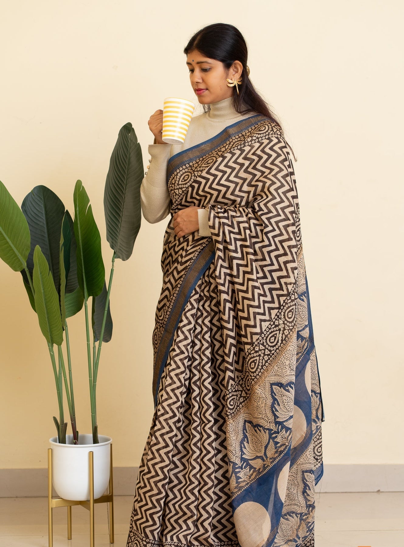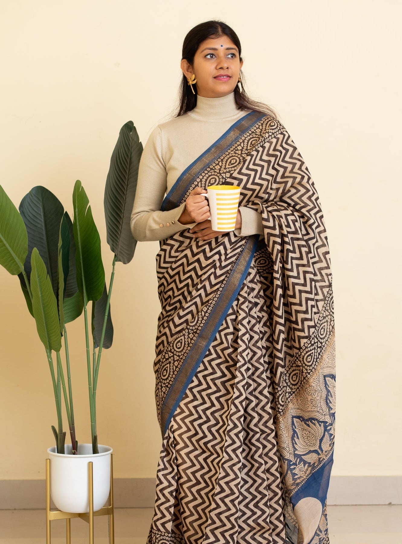 Lightweight, fluid, and comfortable against the skin, this saree moves with ease — from early meetings to long evenings.