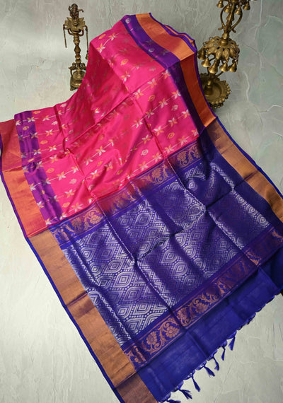 Onion Pink Dual Tone Uppada Pure Silk Saree with Gold-Silver Buttas and Zari Border| SILK MARK CERTIFIED