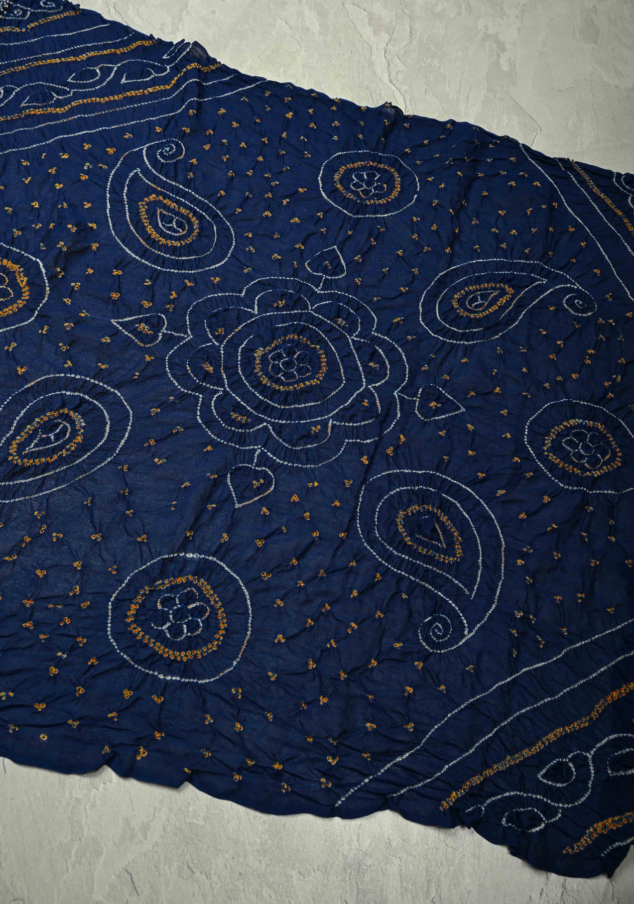 Authentic Ink Blue Silk Georgette Saree with Sarkam Bandhani | SILK MARK CERTIFIED