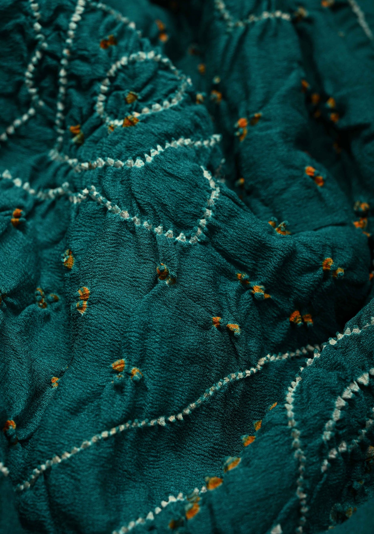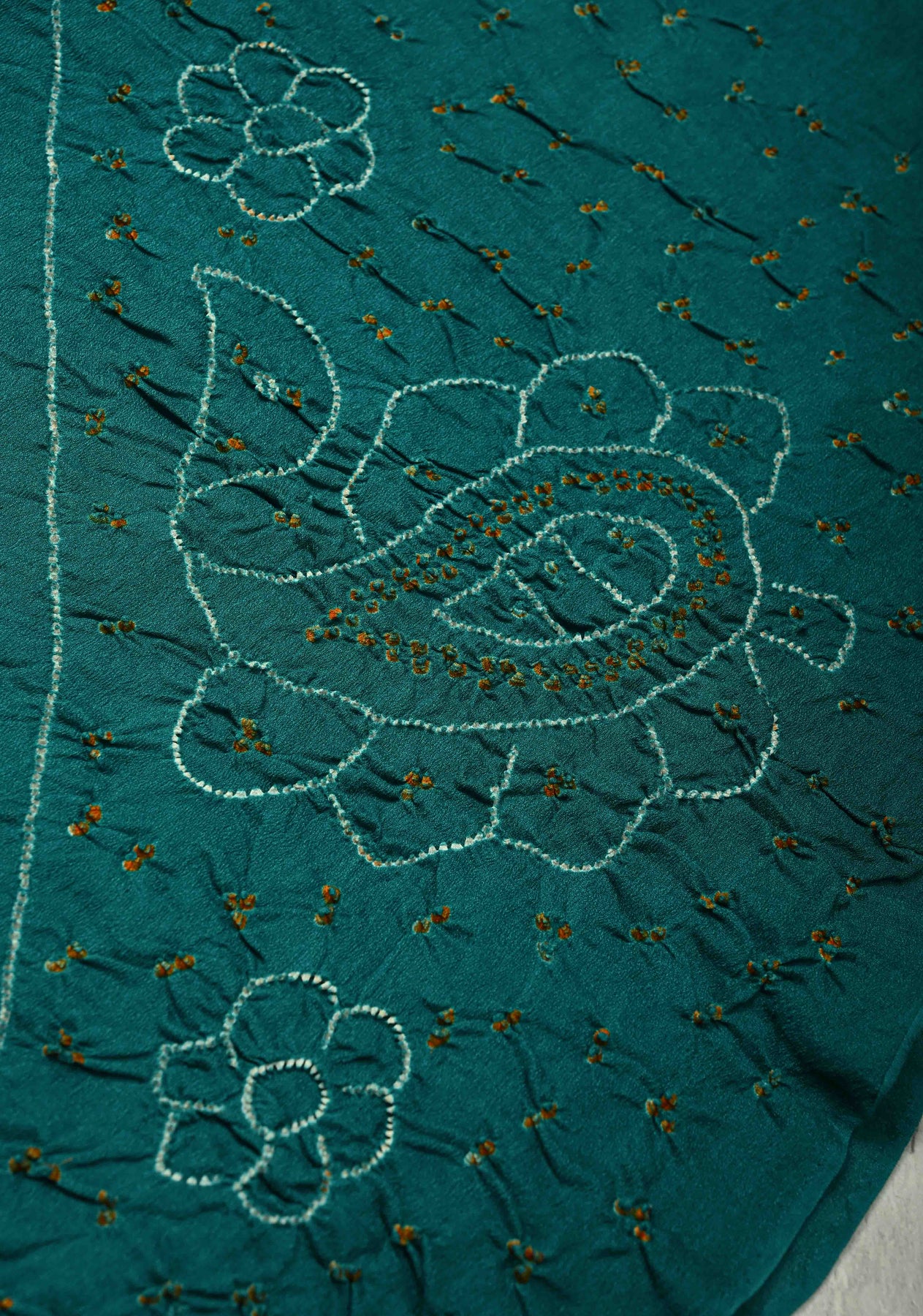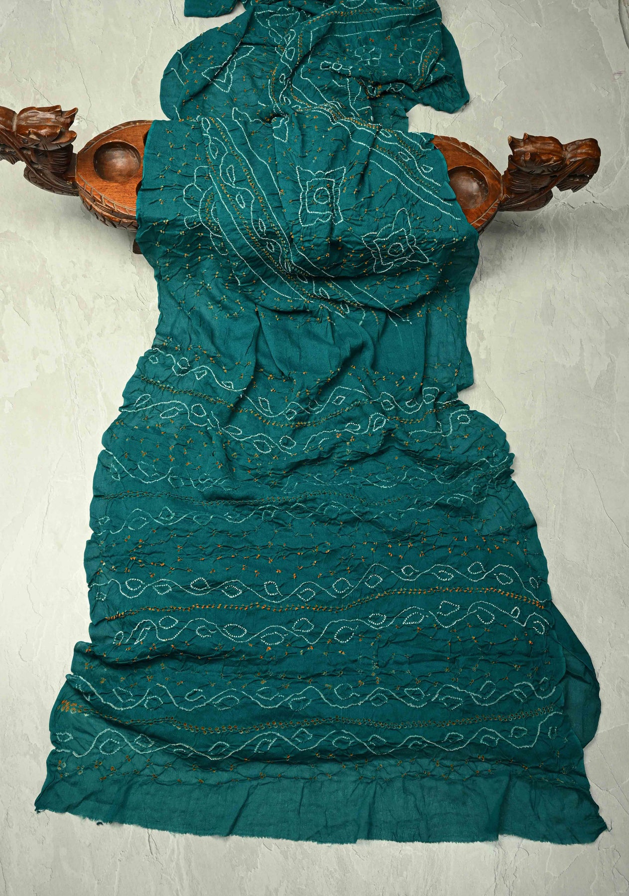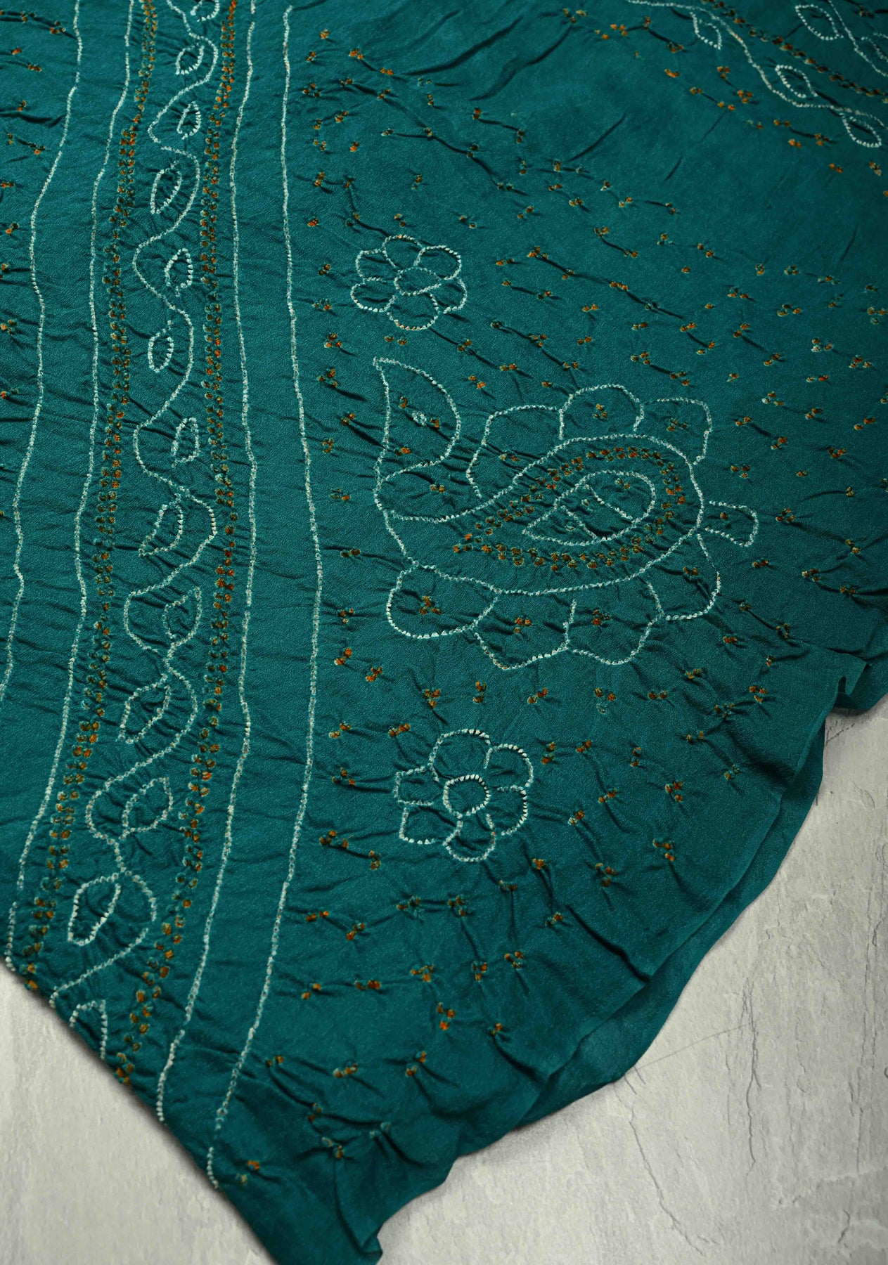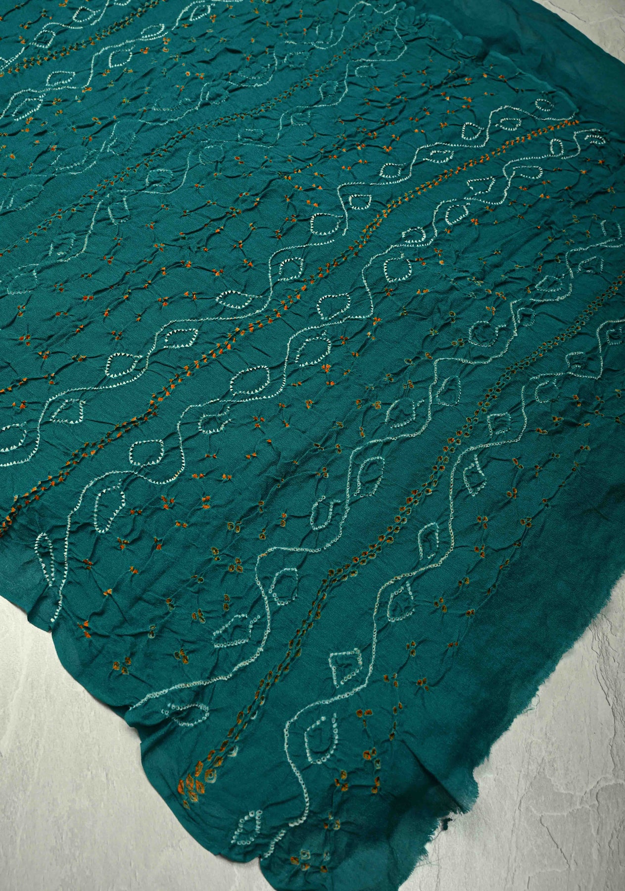 This elegant Authentic Teal Silk Georgette Saree highlights the timeless artistry of traditional Indian textiles. Made from lightweight silk georgette, it features intricate Sarkam Bandhani patterns that add delicate texture and visual charm. The saree’s flowing drape and vibrant teal hue create a sophisticated and graceful silhouette, making it ideal for festive occasions, weddings, and special celebrations. A perfect blend of artisanal craftsmanship and contemporary elegance, this saree exudes style and refinement with every drape.
