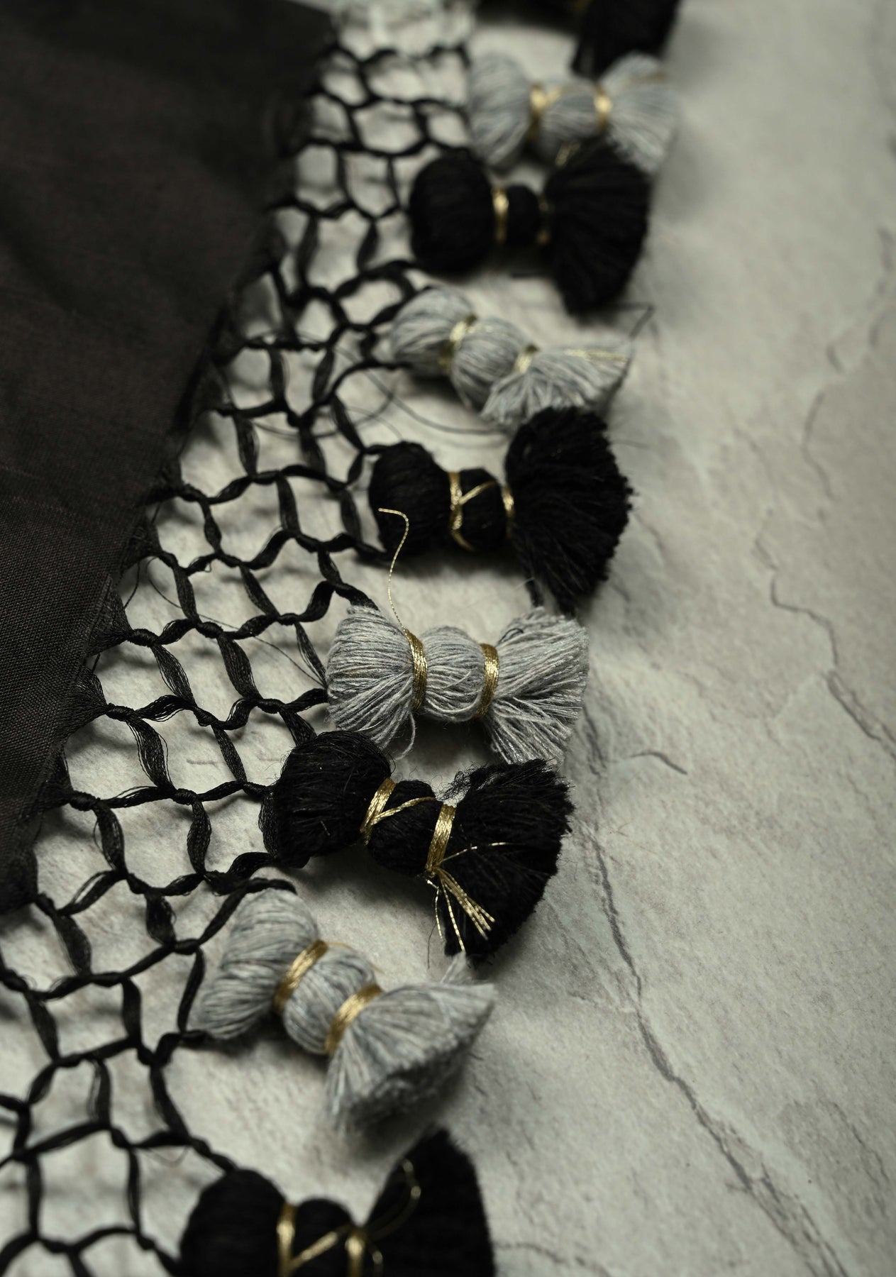 This Black-Gray Banarasi Katan Silk Saree with Vine Zari Stripes and Zari Border is a striking blend of elegance, tradition, and contemporary sophistication. Handwoven from Katan silk, it features intricate vine-patterned zari stripes that glimmer beautifully across the dual-toned black and gray body. The silk texture offers a smooth, lustrous drape, while the ornate golden zari border and pallu enhance its regal appeal. Perfect for festive occasions, or evening events, this saree embodies timeless Banarasi craftsmanship with a modern, refined touch.