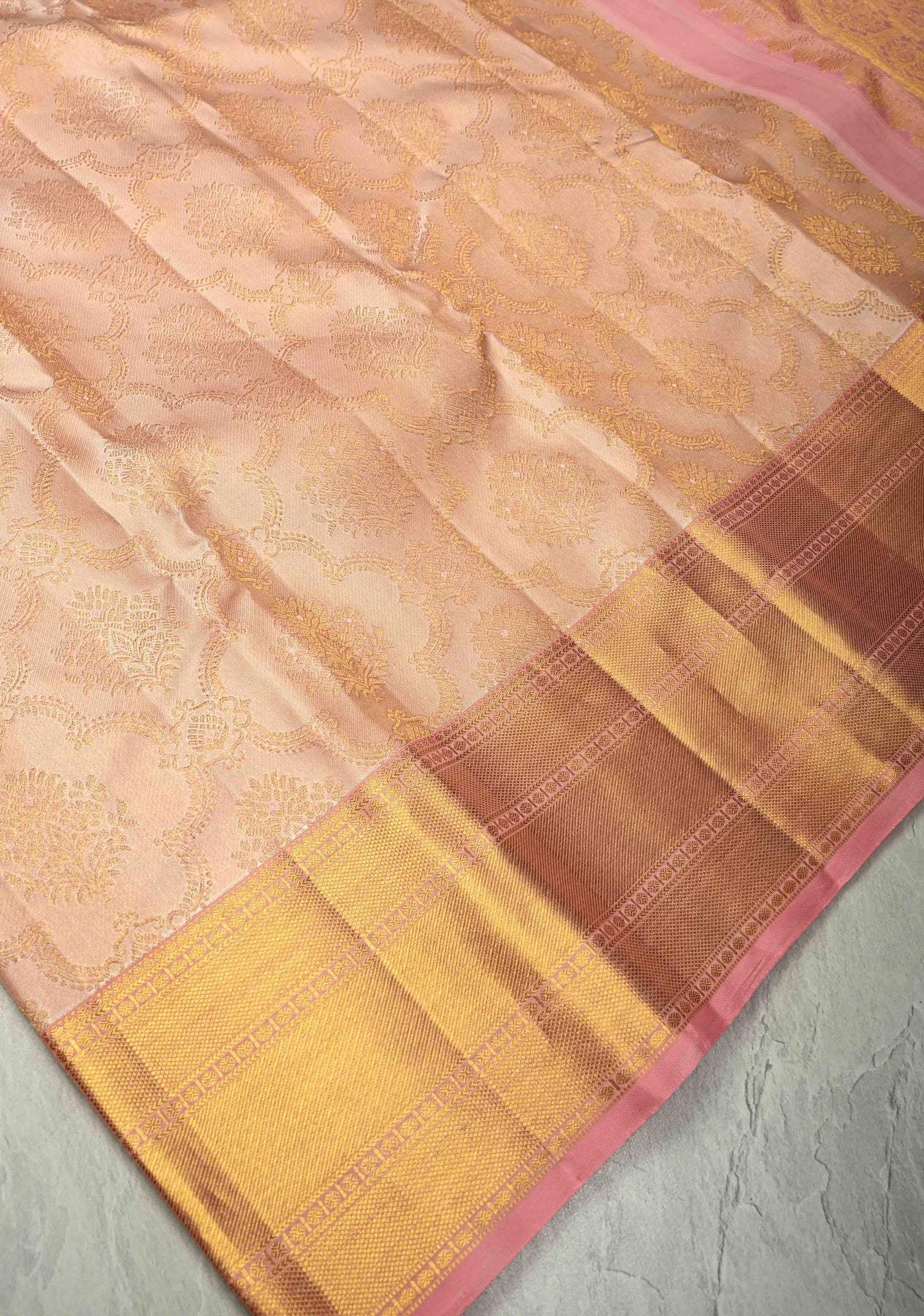 Blush Pink Kanjivaram Tissue Pure Silk Saree with Jaal Design and Zari Border | SILK MARK CERTIFIED