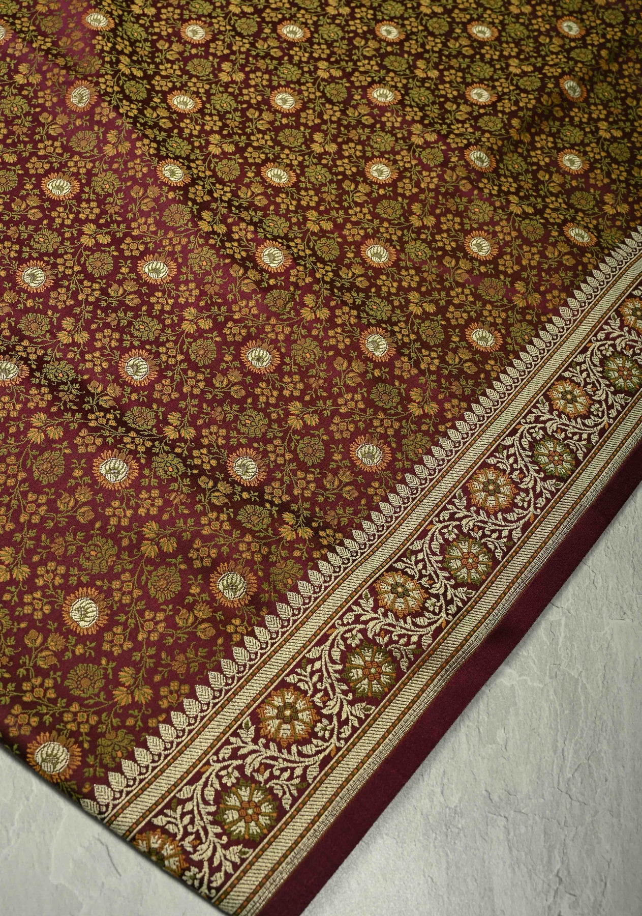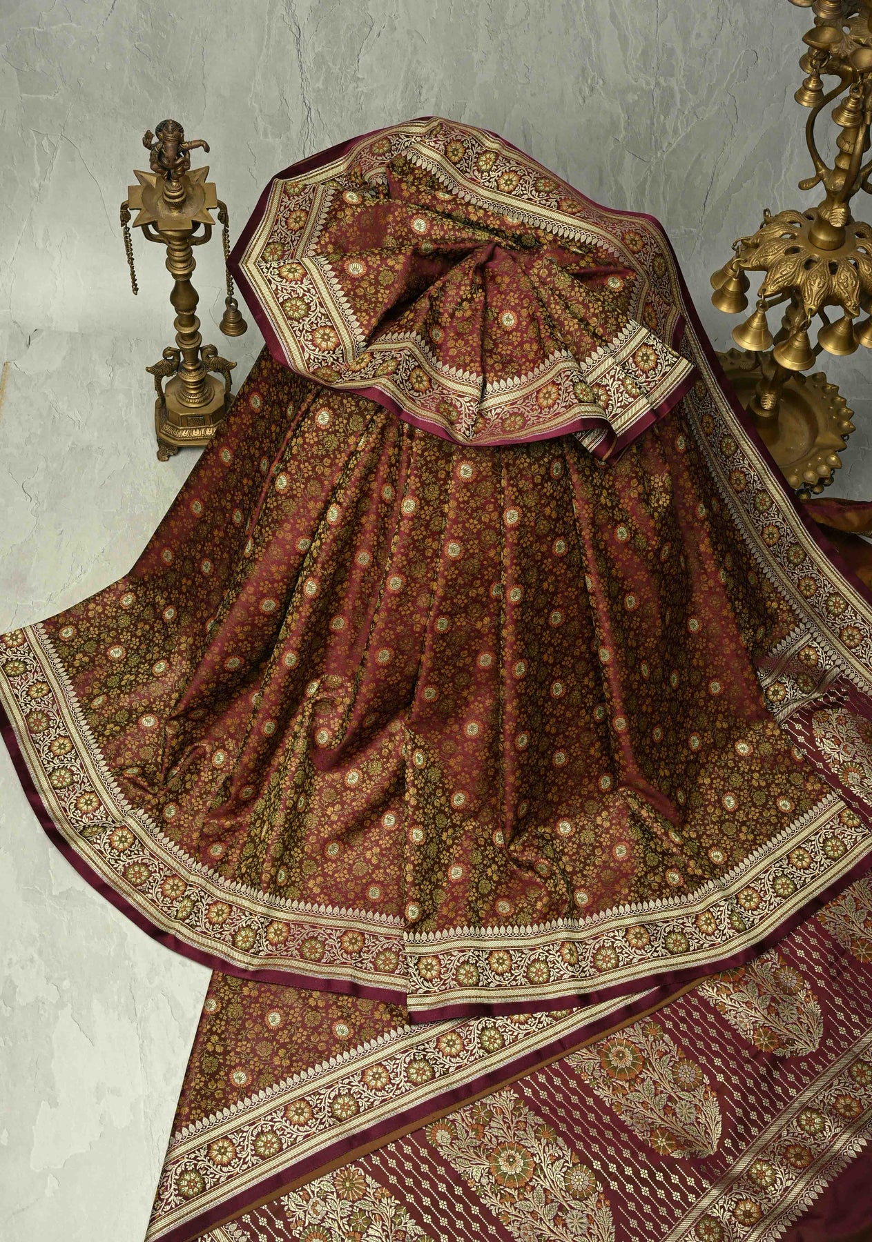 Radiate understated grandeur with this Brown Semi Tanchoi Banarasi Satin Silk Saree, intricately woven with a stunning Meenakari floral brocade jaal. The rich satin silk fabric offers a smooth texture and lustrous sheen. Perfect for weddings, festive celebrations, and cultural gatherings, this saree beautifully blends Banarasi heritage with timeless sophistication.