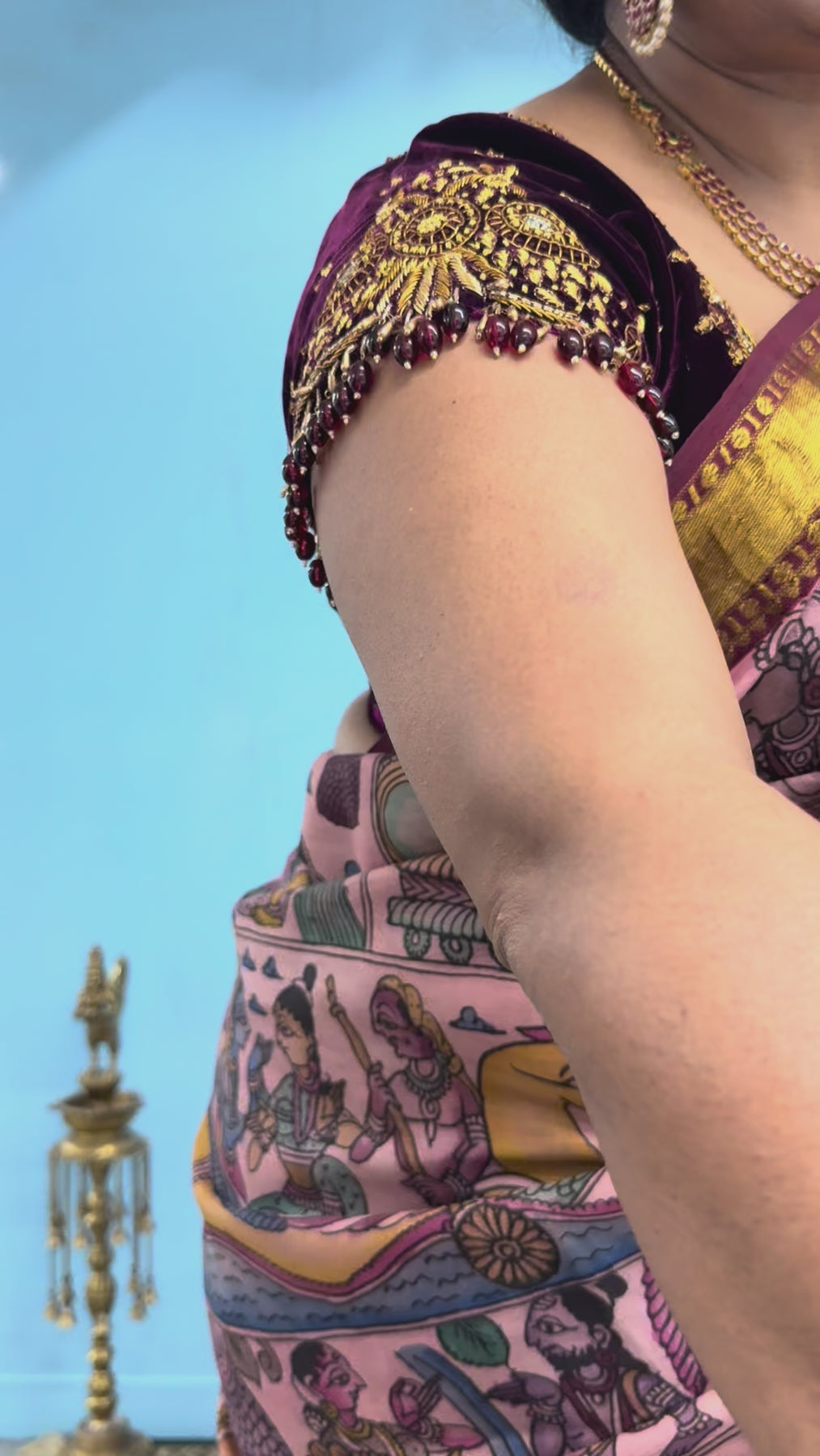 The lightweight and sheer texture of organza silk gives it a graceful drape, making it ideal for weddings, festive occasions, cocktail parties, and formal celebrations. Its rich amethyst hue adds a regal charm, perfect for women who love understated .