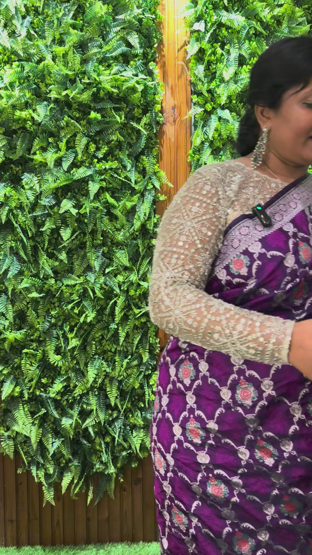 This regal Deep Purple Pure Banarasi Mashru Silk Saree is a magnificent expression of traditional elegance and rich craftsmanship. The lustrous Mashru silk fabric offers a luxurious drape with a smooth, satin-like finish. The body is embellished with intricate floral Meenakari buttas in vibrant hues, adding color and charm to the deep, royal purple base. A classic gold zari border enhances the saree’s grandeur, making it perfect for weddings, festive celebrations, and special occasions. Rooted in Banarasi weaving heritage, this saree is a timeless blend of sophistication, tradition, and artistry.