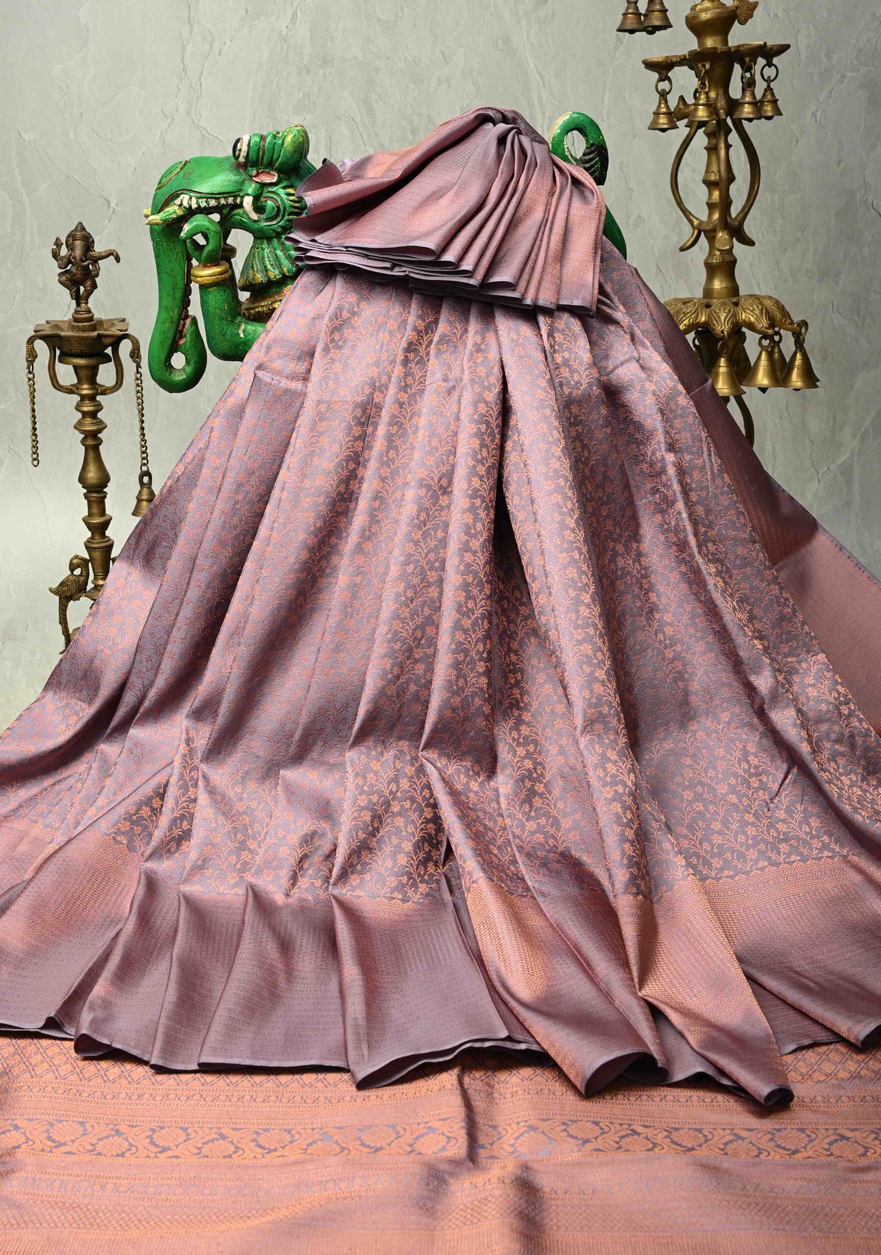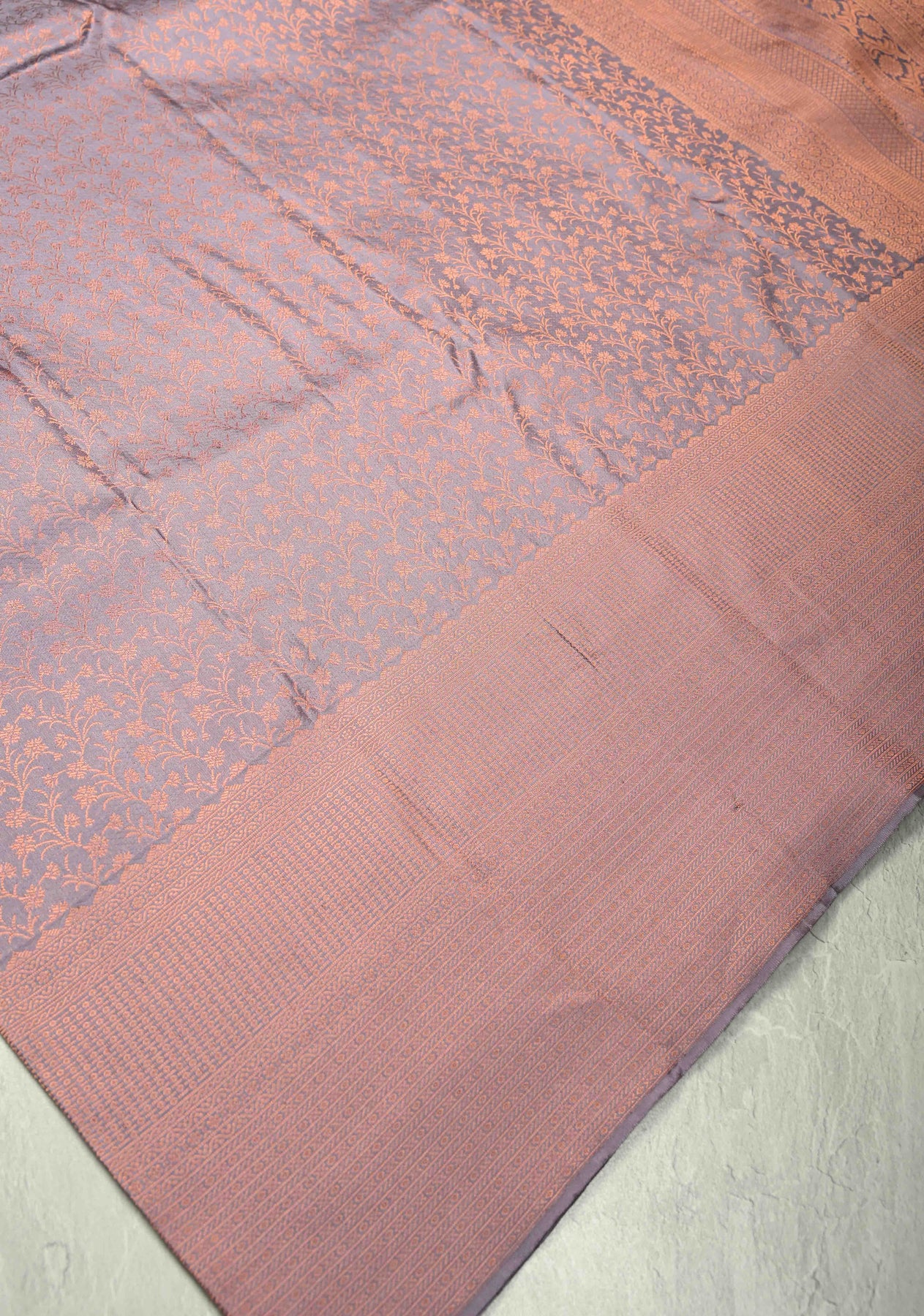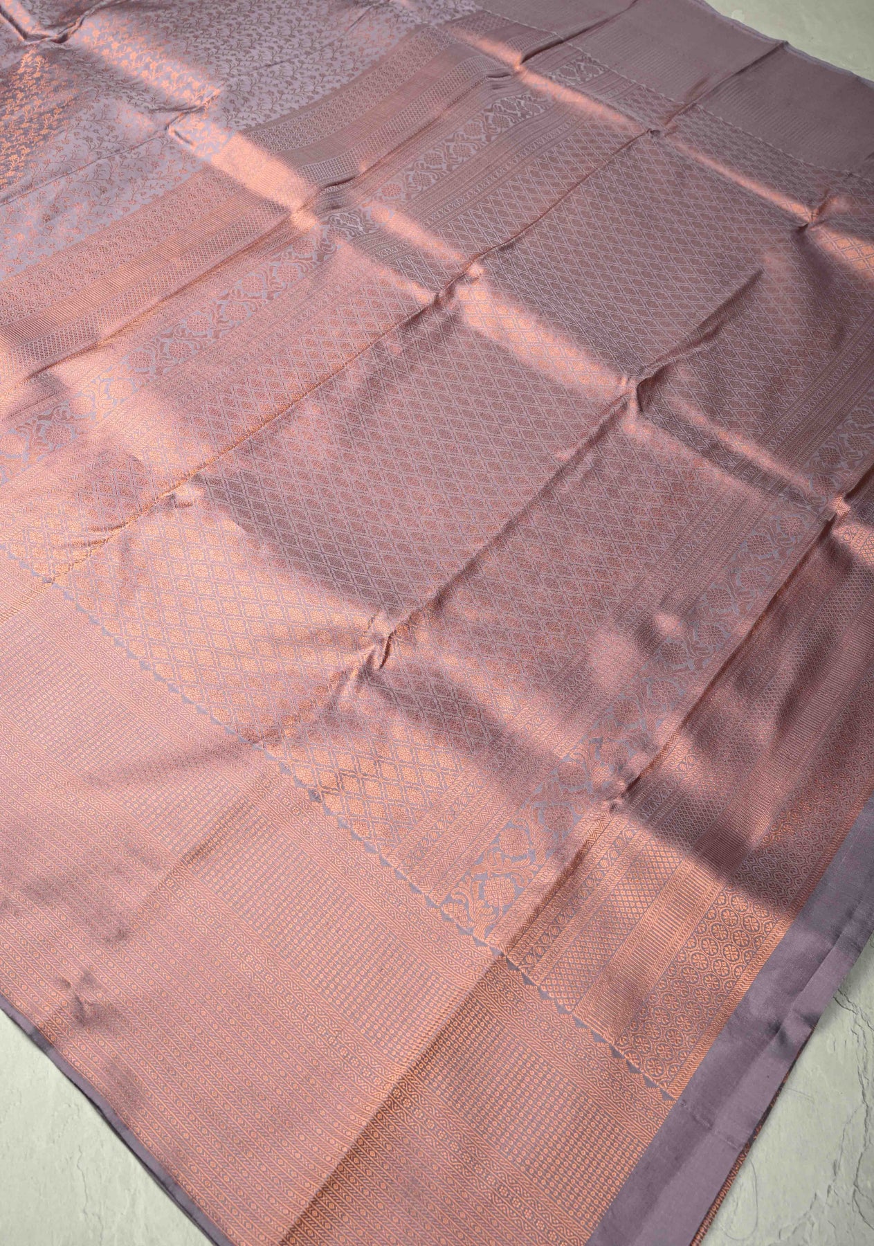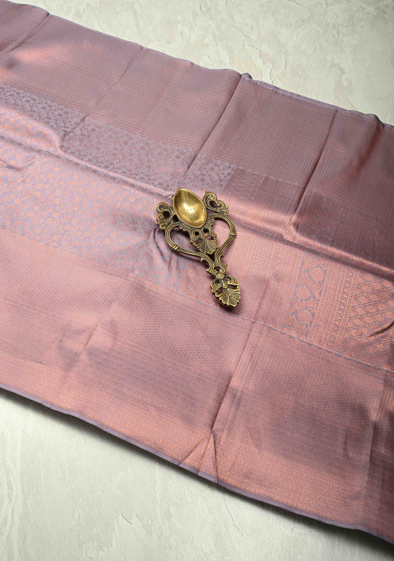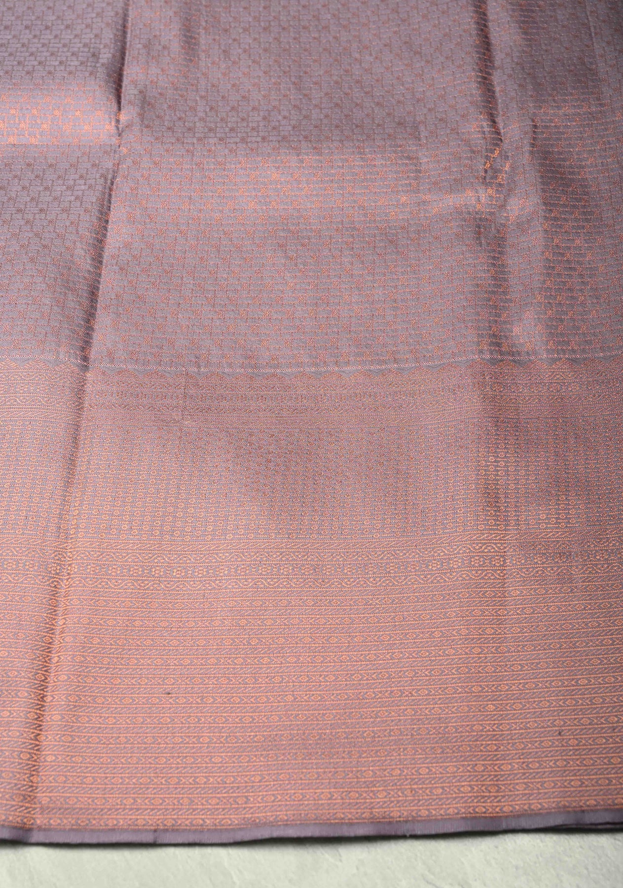 Dusty Lavender Pure Kanchi Silk Saree with Brocade and Zari Border | SILK MARK CERTIFIED