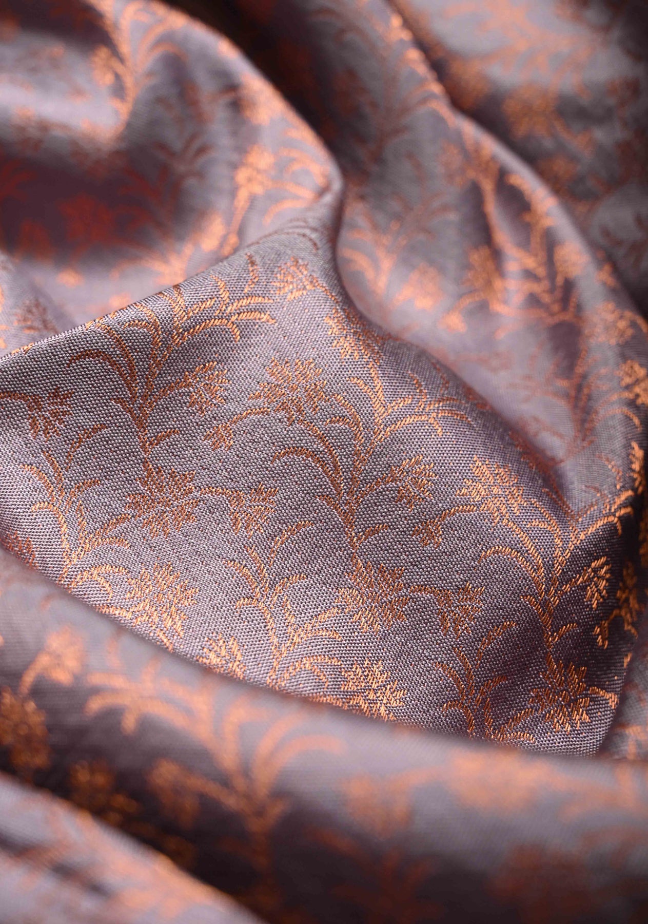 Add a touch of regal elegance to your wardrobe with this Dusty Lavender Pure Kanchi Silk Saree. Handwoven from authentic Kanchipuram silk, it features intricate brocade motifs that reflect traditional craftsmanship. The golden zari border and pallu add a shimmer, making it perfect for weddings, festive occasions, and special celebrations. A timeless piece that exudes sophistication and cultural charm.