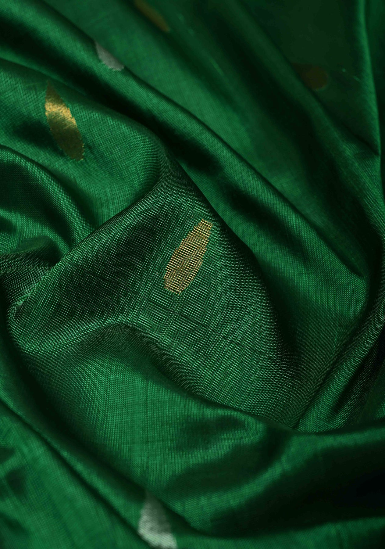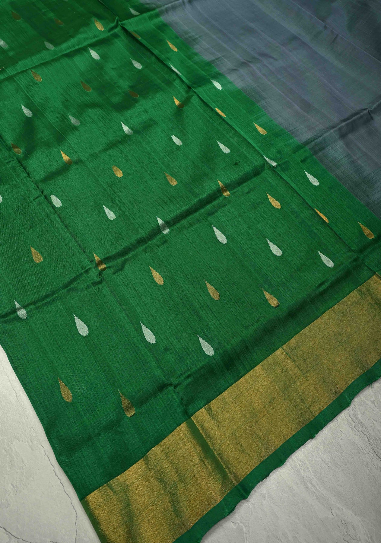 patli Pallu Gray-Green Uppada Handloom Silk Half-Half Saree with Sona Rupa Buttas and Tissue Border | SILK MARK CERTIFIED