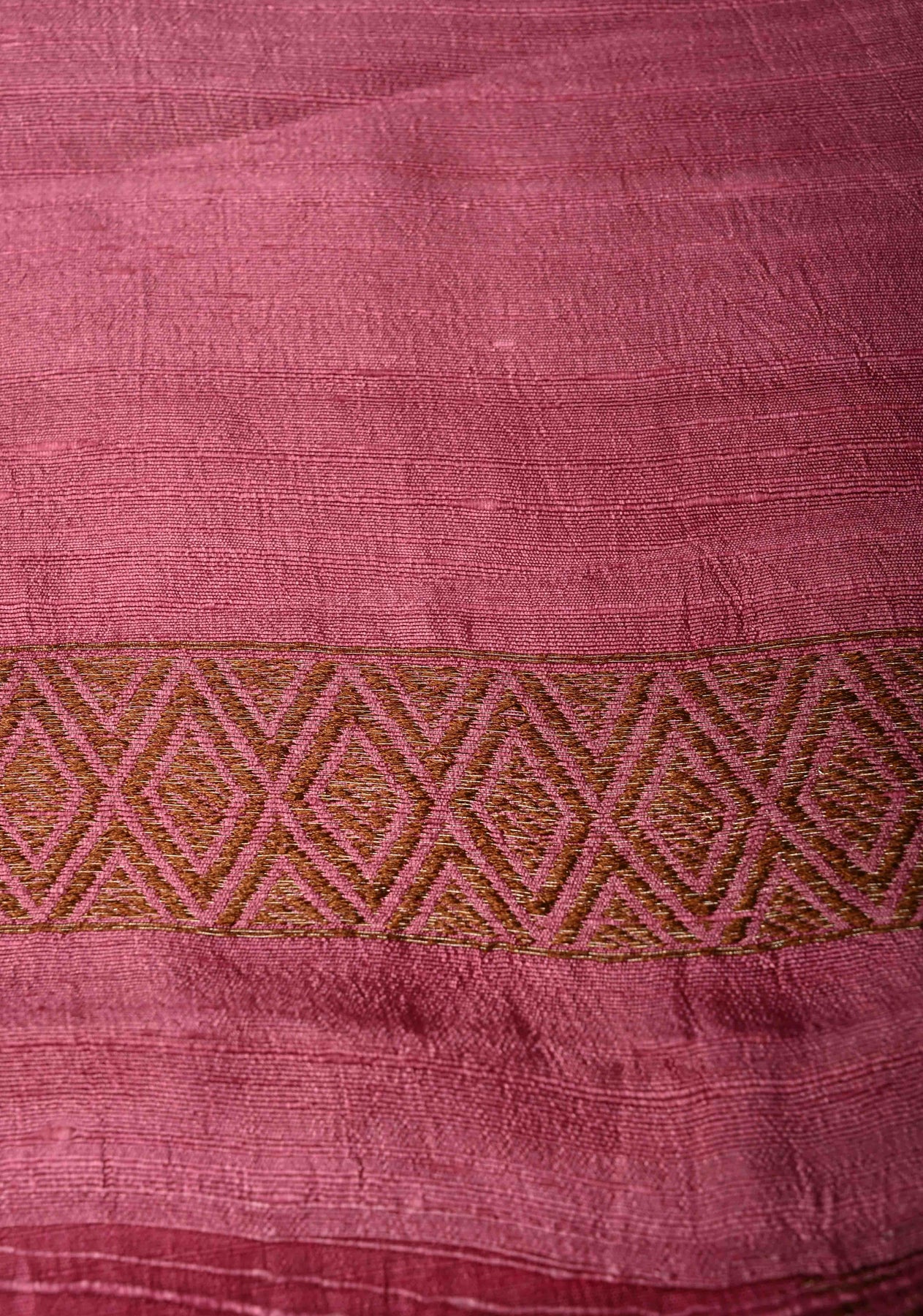 This exquisite Multicolor Borderless Raw Silk Banarasi Brush Dye Saree is a vibrant celebration of color and craftsmanship. Handwoven from pure raw silk, it features a mesmerizing blend of purple, pink, and mauve tones created through a unique brush dye technique that adds depth and artistic flair to the fabric. The saree is designed in the traditional Rangkaat weaving style, a hallmark of Banarasi artistry, and is beautifully adorned with antique zari diagonal stripes that exude understated elegance. Its borderless design enhances the contemporary appeal, making it a perfect choice for festive occasions, weddings, and grand celebrations.