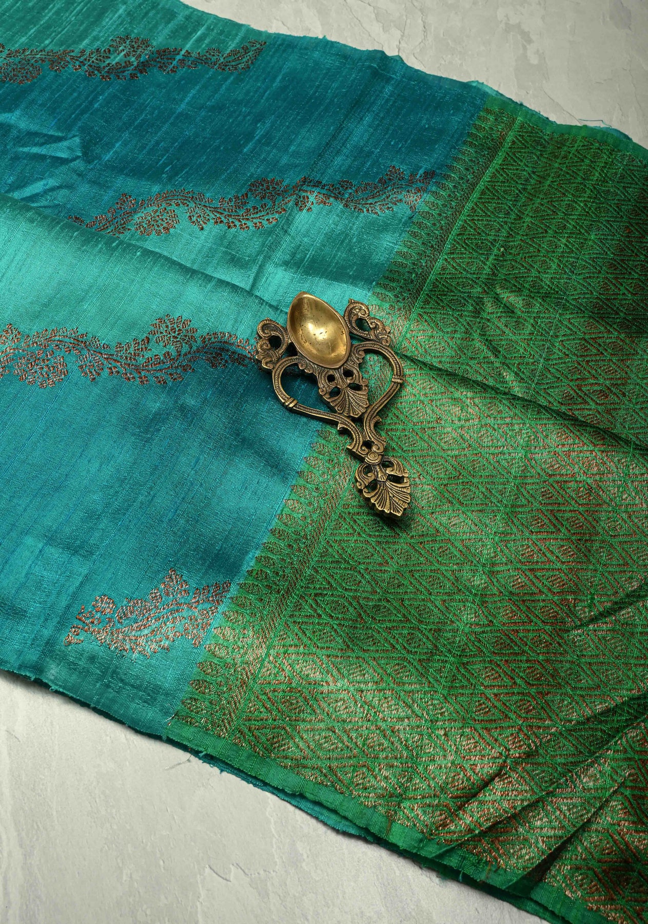*Note: This saree is made of natural raw silk and Antique tone zari,  and there may be slight inconsistencies such as in its weaving. These are characteristic of handmade products and attest to their originality and are not considered as defects.