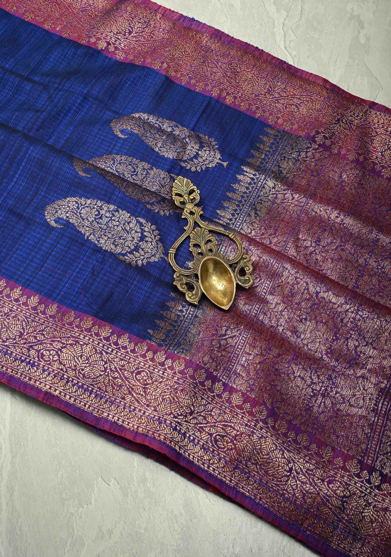 Elevate your traditional wardrobe with this Pure Banarasi Dupion Silk Saree in Blue, adorned with intricate antique zari paisley buttas across the body. Crafted from Dupion silk, it features a rich texture and graceful drape, while the zari border adds a classic Banarasi charm. Perfect for weddings, festive occasions, and cultural celebrations, this saree blends elegance with timeless craftsmanship.