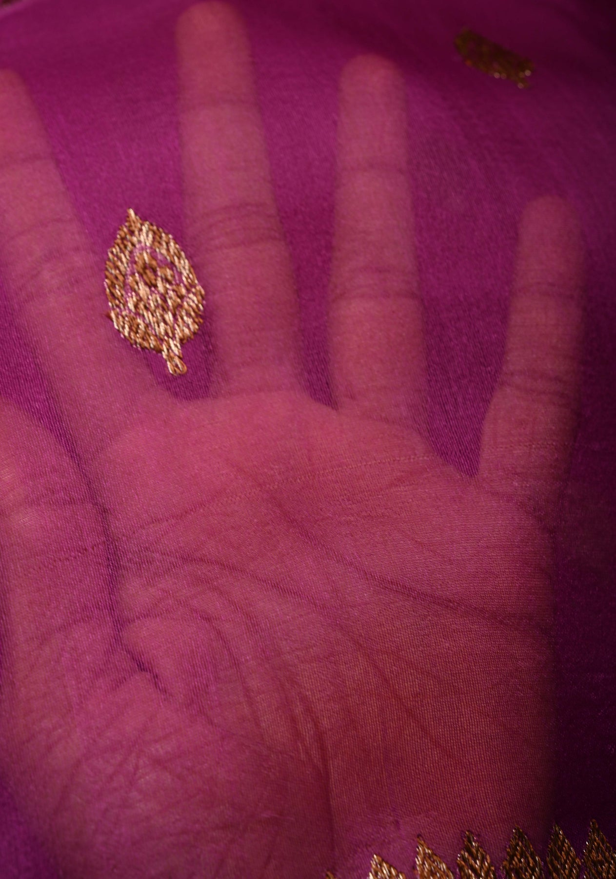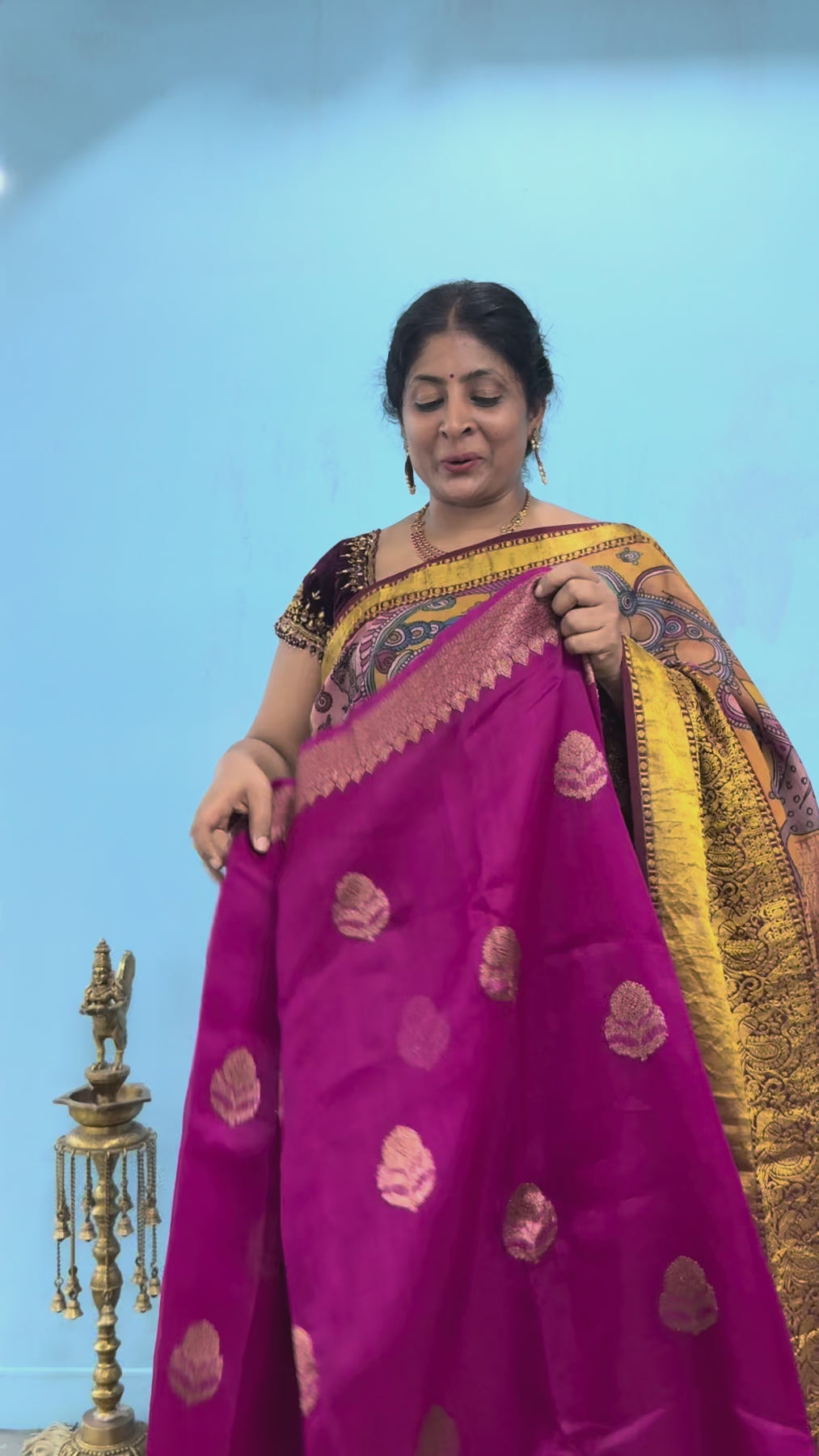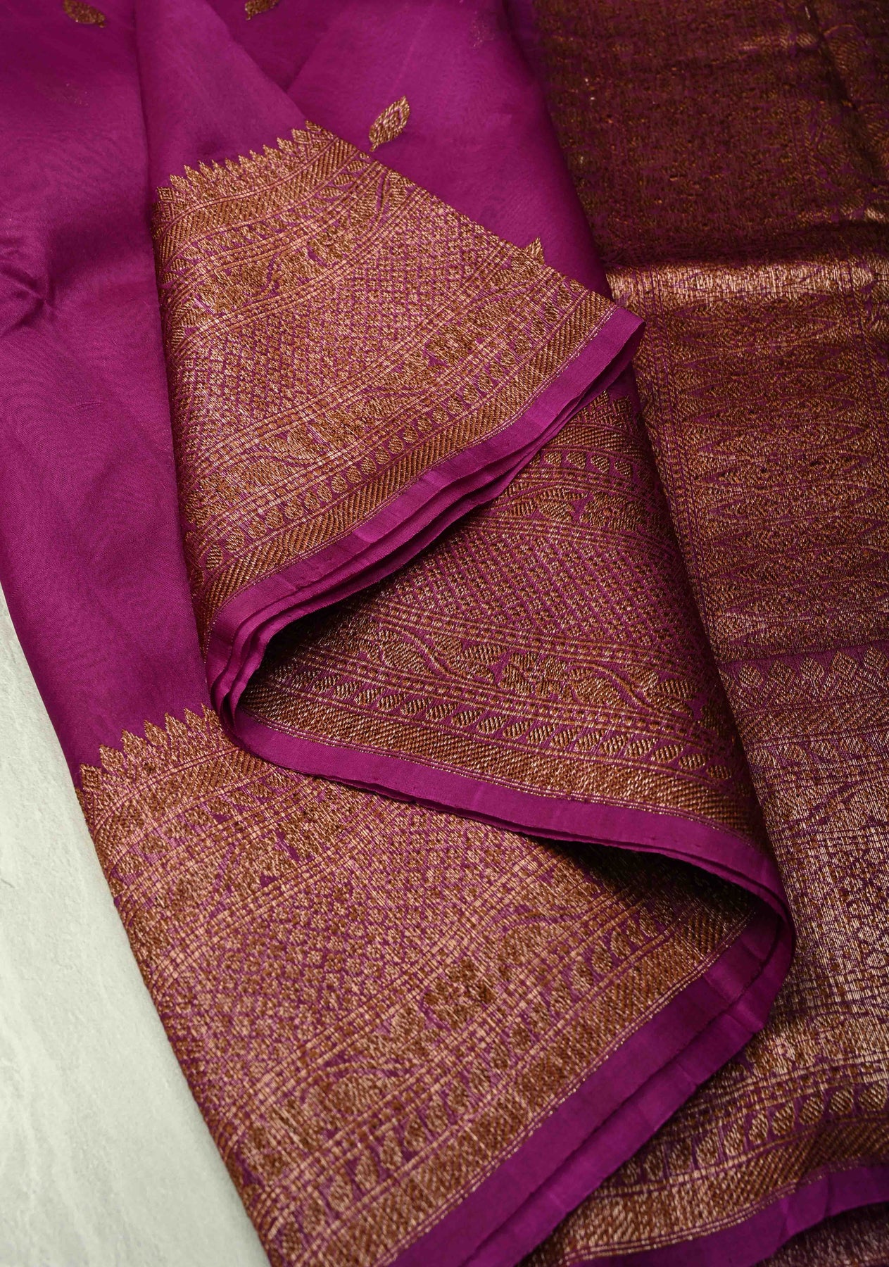 This Purple Pure Banarasi Kora Silk Saree embodies regal elegance and traditional craftsmanship. Expertly woven from fine Kora silk, it features intricate antique zari buttas that add a soft golden shimmer against the rich purple base. The lustrous zari border enhances the saree’s royal charm, creating a perfect balance of grace and grandeur. Lightweight yet luxurious, this saree is ideal for weddings, festive occasions, and grand celebrations—reflecting the timeless beauty and finesse of Banarasi weaving.