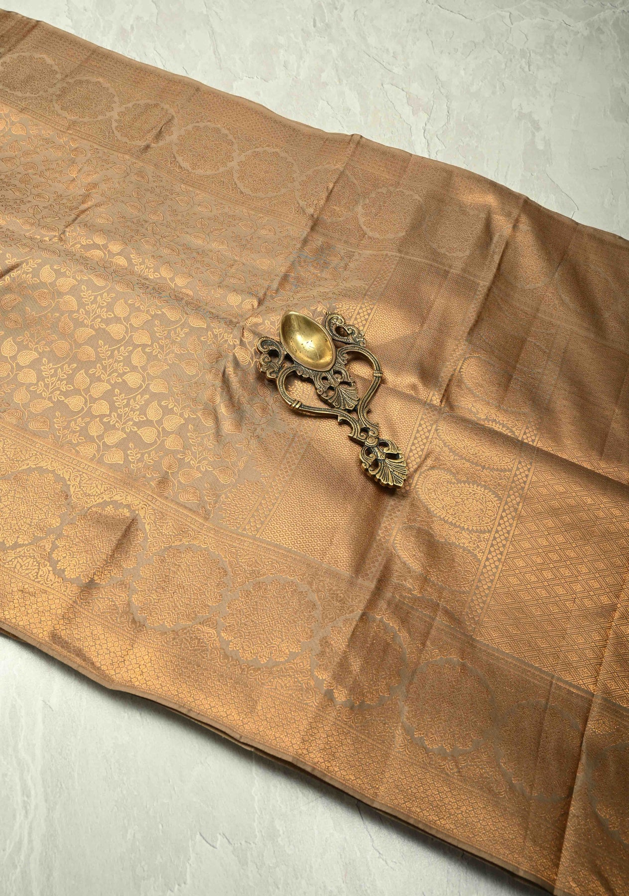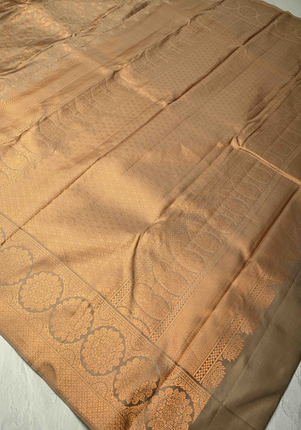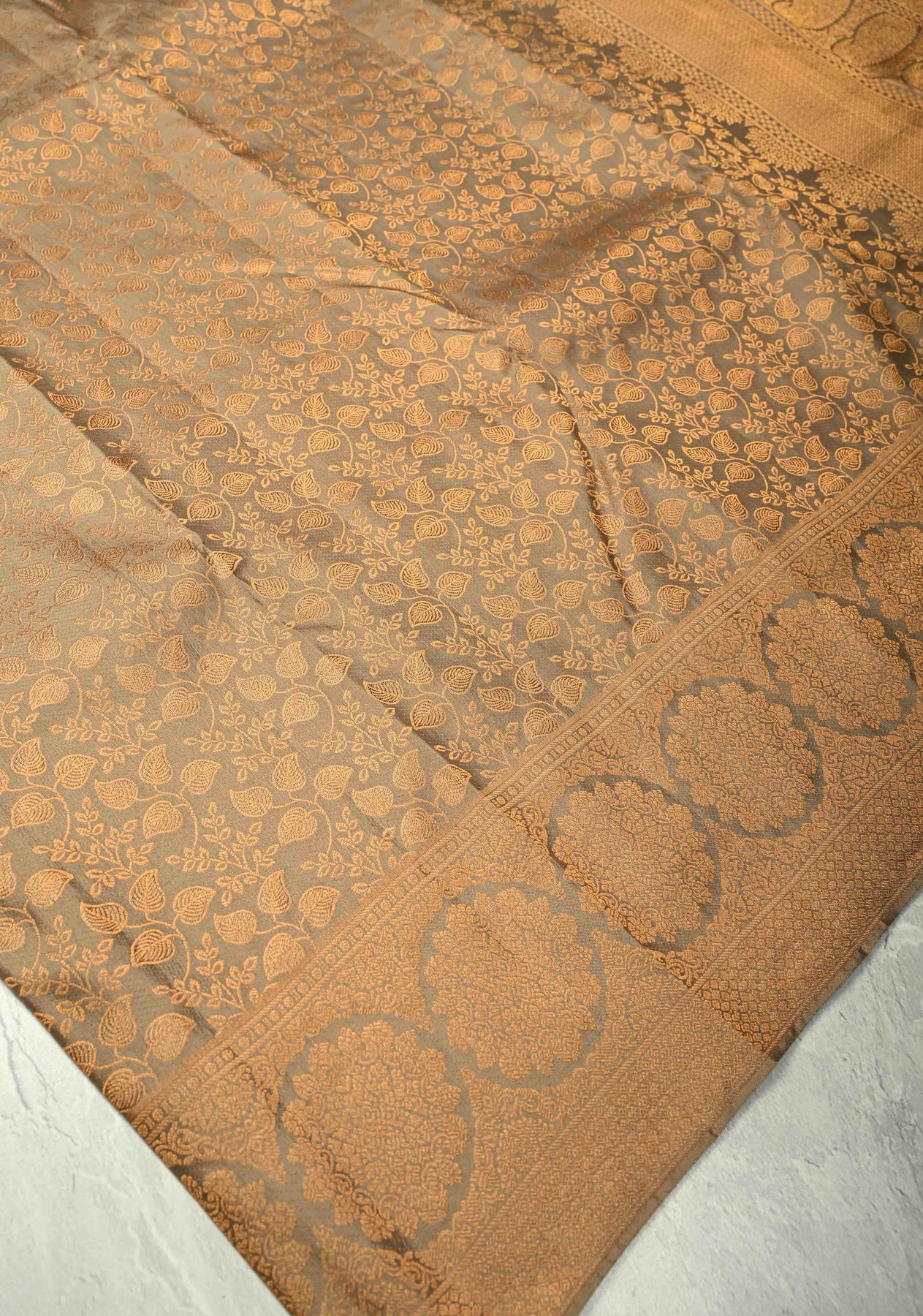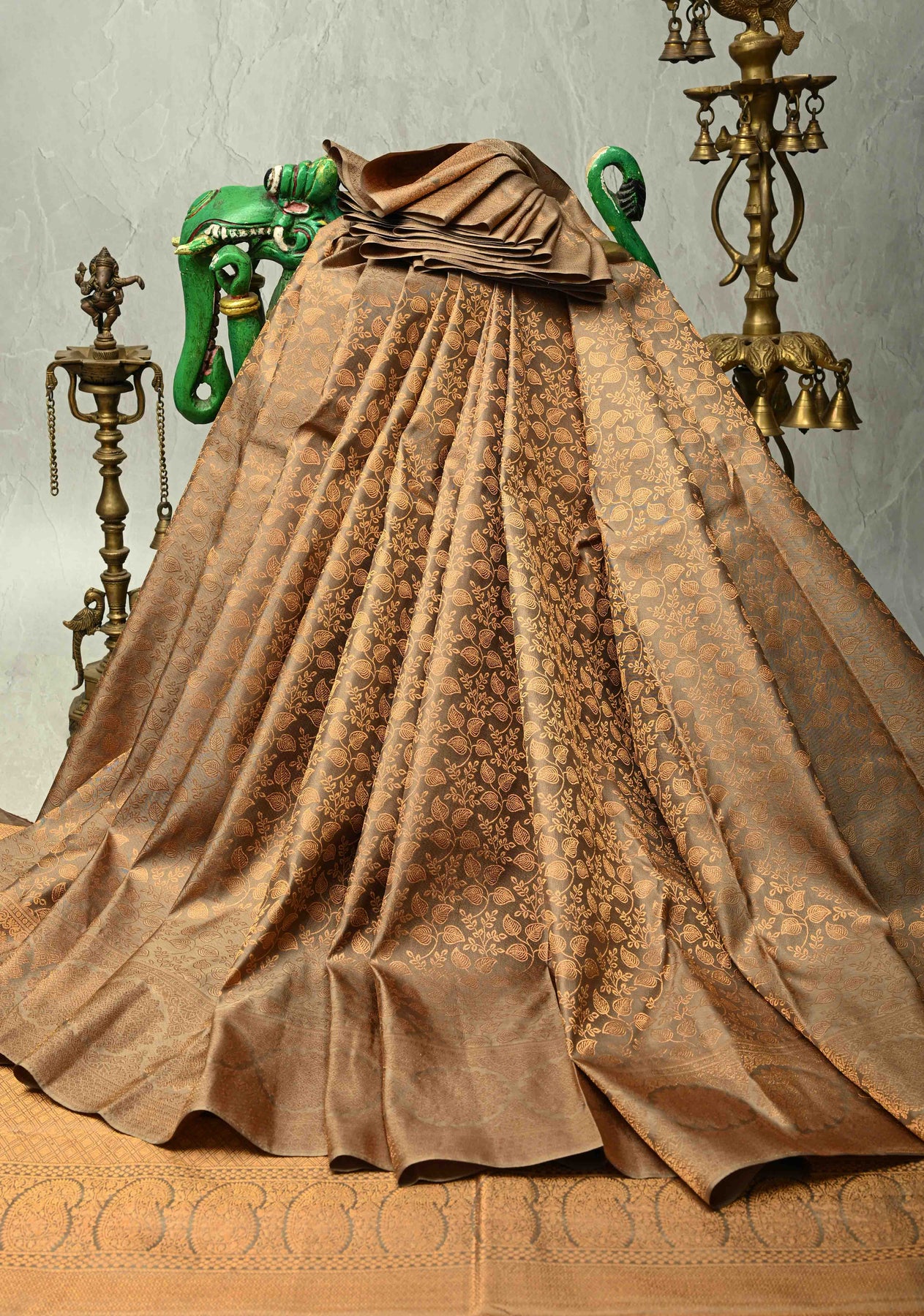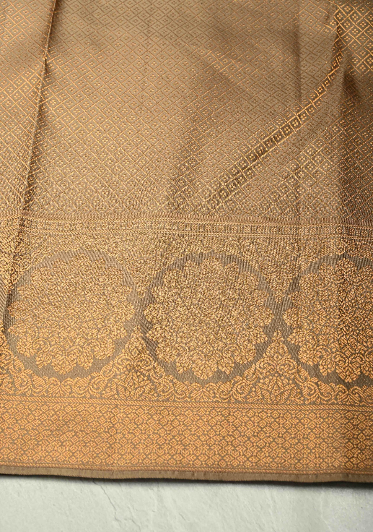 Elevate your festive and traditional wardrobe with this Sage Green Pure Kanchi Silk Saree, a perfect blend of elegance and craftsmanship. Handwoven from authentic Kanchipuram silk, it features a delicate brocade pattern that adds texture and sophistication. The golden zari border and pallu enhance its regal charm, making it ideal for weddings, festive occasions, and special celebrations. This saree is a timeless piece for those who appreciate heritage and luxury.