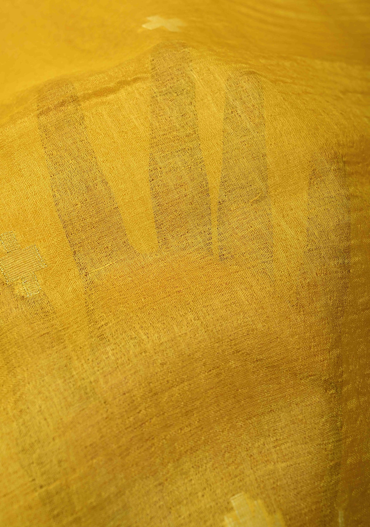 The vibrant sunflower yellow hue radiates warmth and festivity, while the delicate embroidery adds a subtle shimmer, making it ideal for weddings, festive celebrations, and cultural events