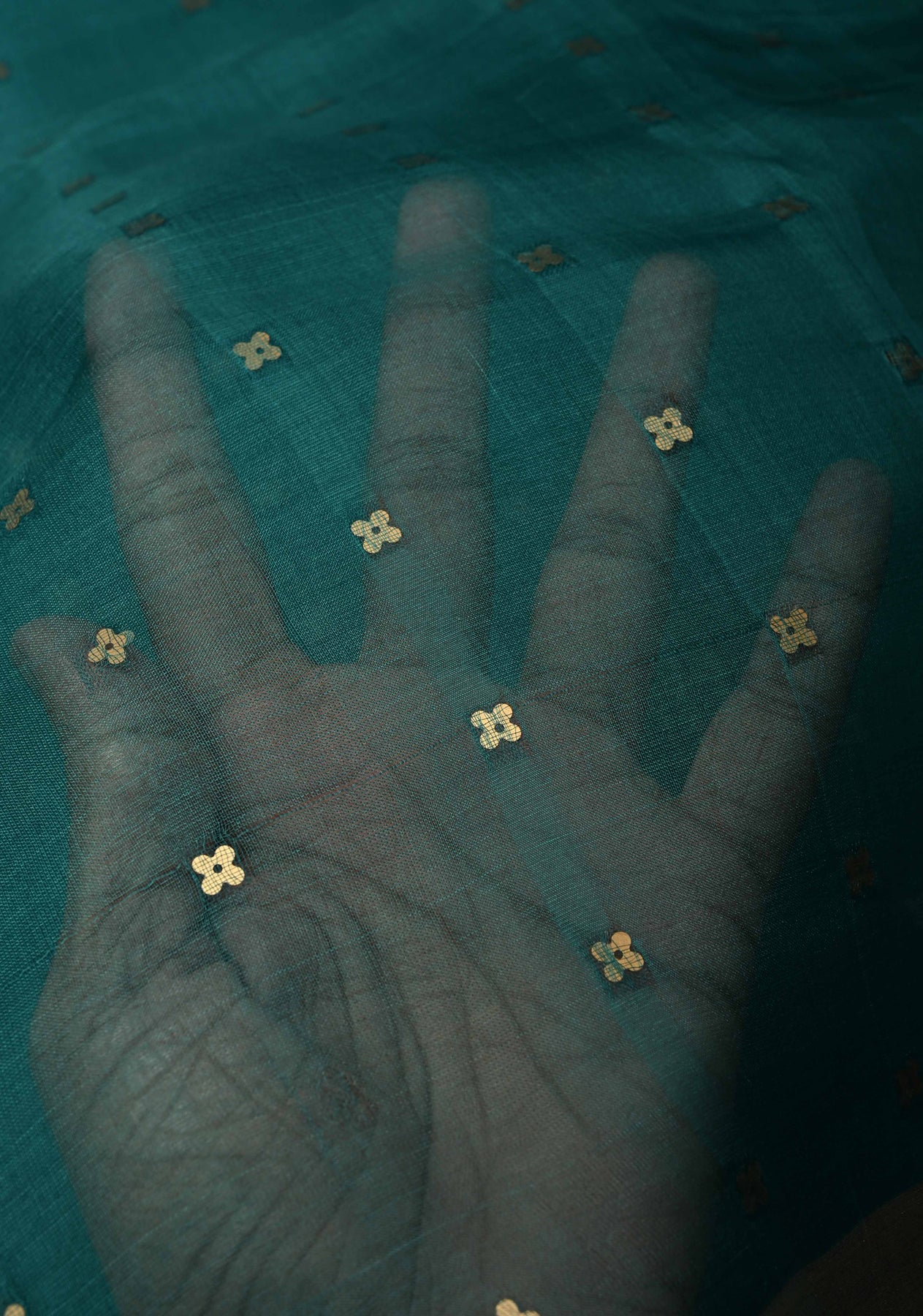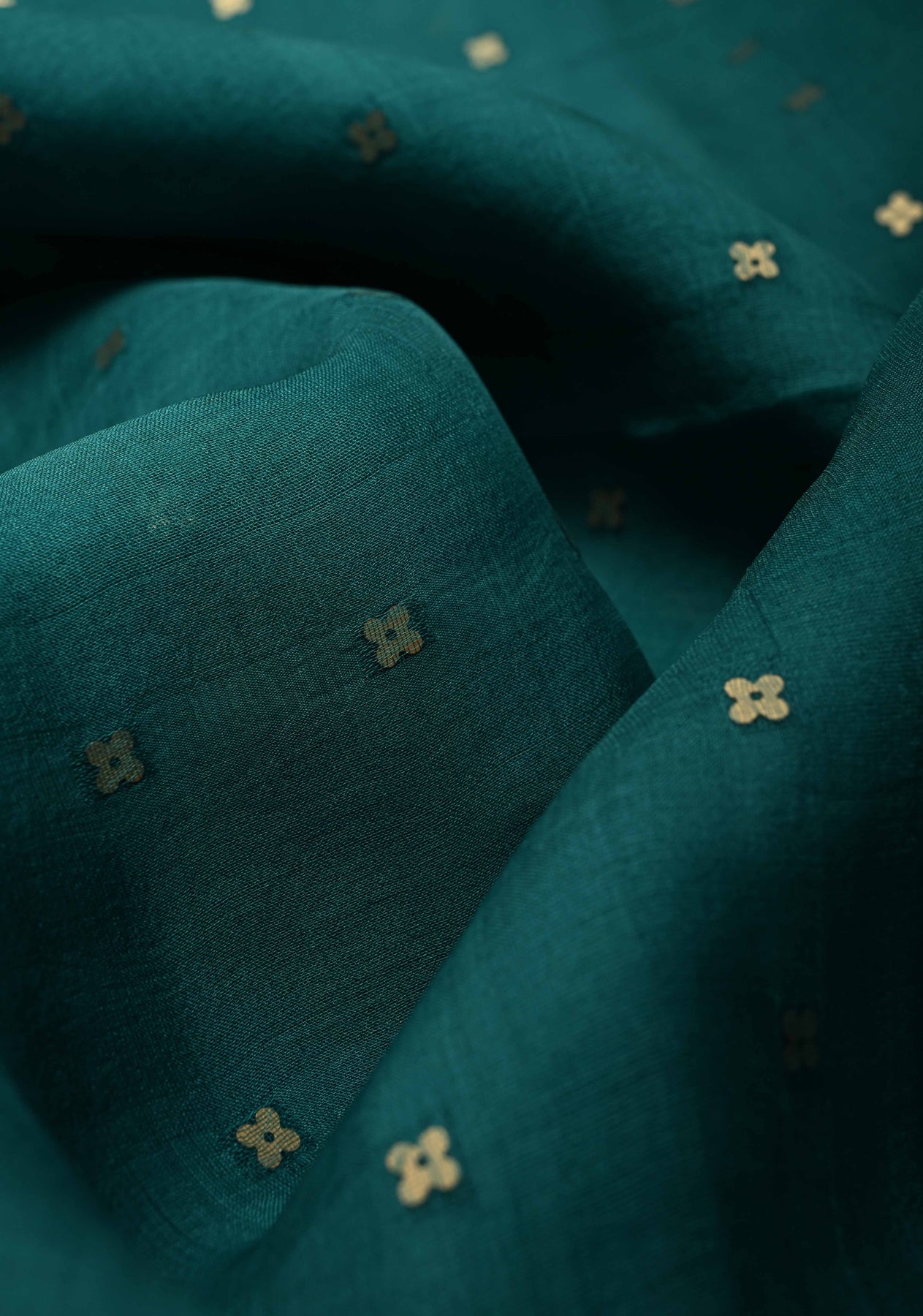 Step into timeless elegance with this Teal Matka Muslin Silk Saree, a stunning blend of sophistication and subtle glamour. Expertly woven from Matka Muslin Silk, the saree features delicate pocket sequin work that adds a refined sparkle across its textured drape. The minimal zari border perfectly complements the rich teal hue, making it an ideal choice for festive occasions, weddings, or elegant evening gatherings.