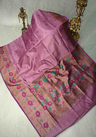 Onion Pink Pure Banarasi Tussar Silk Saree with Antique Zari Buttas and Meenakari Border | SILK MARK CERTIFIED