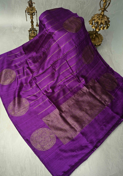 Purple Banarasi Raw Silk Saree with Antique Zari Stripes and Mandala Motifs on Border | SILK MARK CERTIFIED