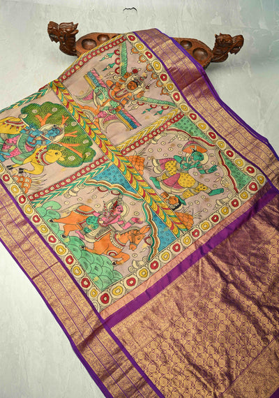 Dashavataram Theme: Authentic Pen Kalamkari on Pure Kanjivaram Silk Saree with Zari Border | SILK MARK CERTIFIED