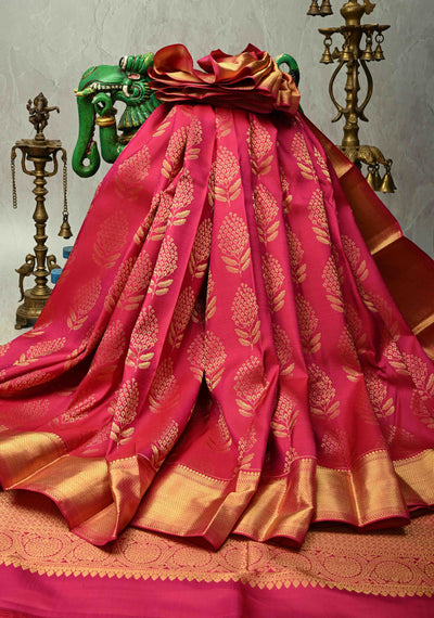 Rani Pink Pure Kanjivaram Silk Saree with Brocade and Zari Border | SILK MARK CERTIFIED