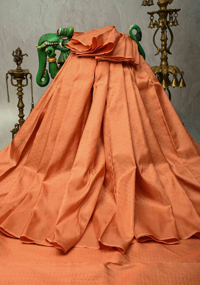 Peach Pure Kanjivaram Silk Saree with Brocade and Zari Border| SILK MARK CERTIFIED
