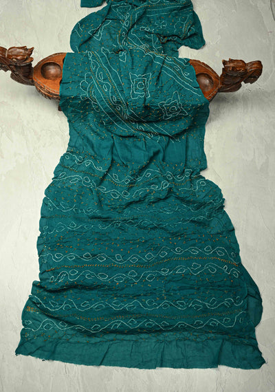 Authentic Teal Silk Georgette Saree with Sarkam Bandhani | SILK MARK CERTIFIED